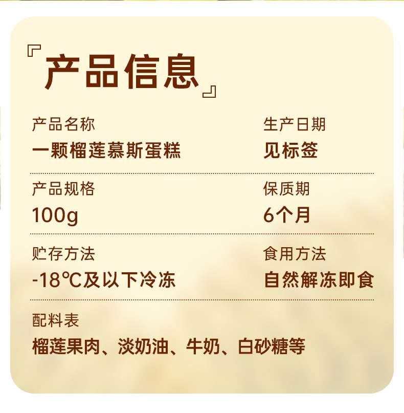 두리안 프렌치 스위트 무스 케이크 골든 필로우 두리안 냉동 페이스트리 인터넷 연예인 프렌치 디저트 전자상거래 핫 스타일 SF