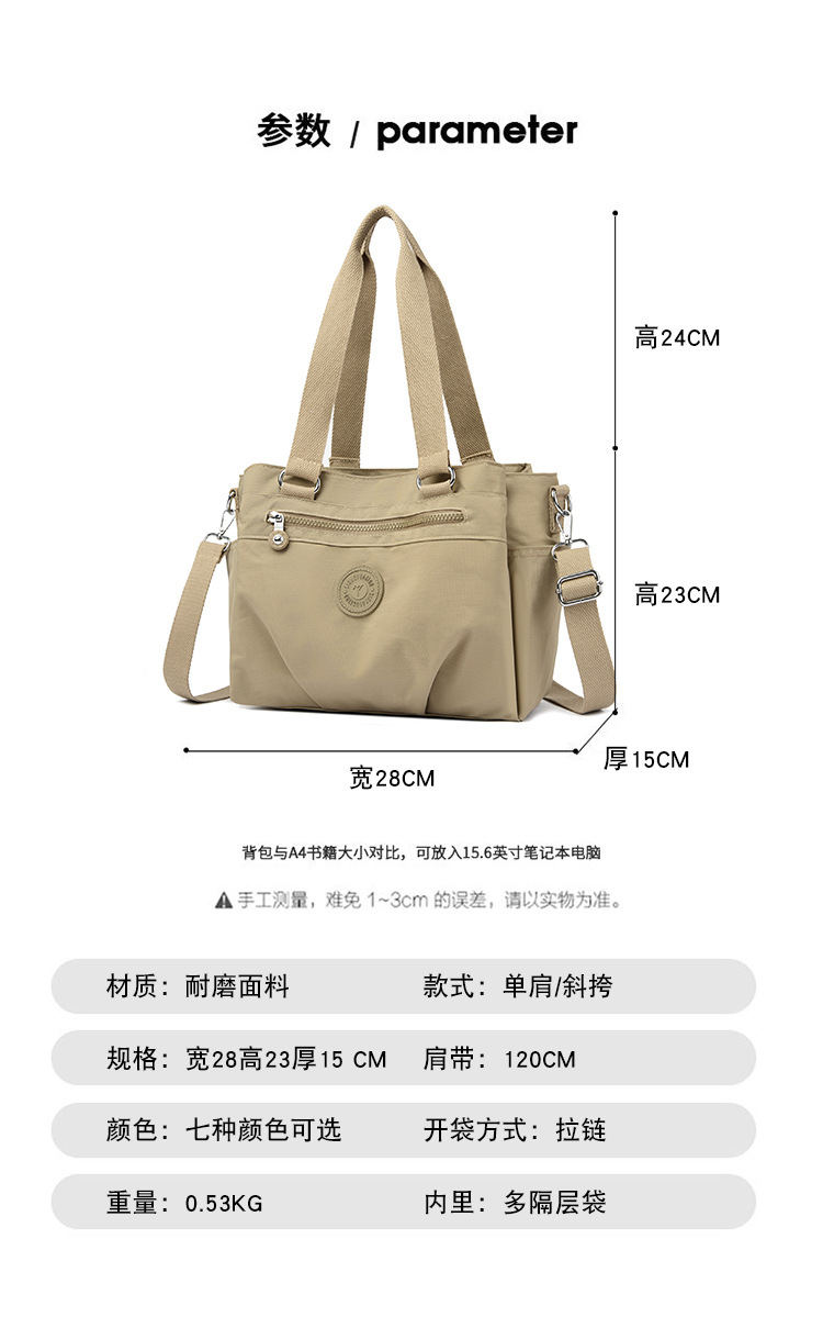 캐주얼 여성 가방 2025 여름 새로운 휴대용 크로스 바디 백 간단한 경량 멀티 포켓 대용량 나일론 숄더 백