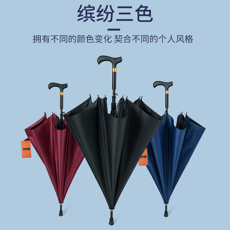 노인용 지팡이 우산, 자동 야외 등산용 미끄럼 방지, 비와 햇빛 모두 사용 가능한 우산, 로고 인쇄, 다기능 우산, 자외선 차단
