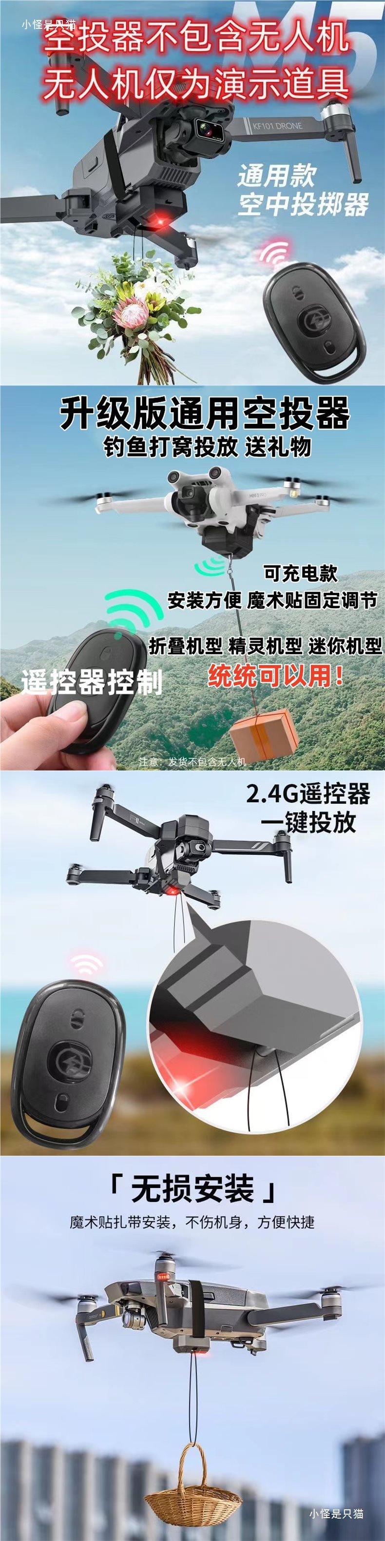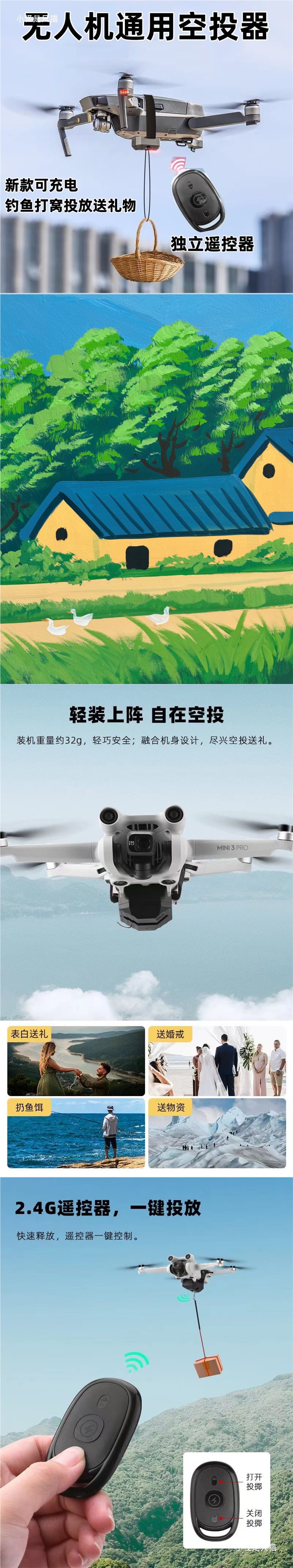 드론 범용 에어드롭퍼, 구조용 미끼 투척, 낚싯줄 투척 연습, 독립형 원격 제어, 원클릭 투척