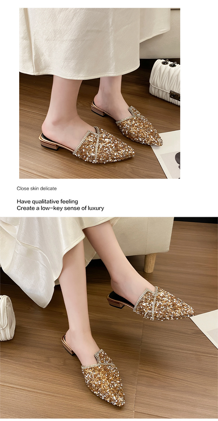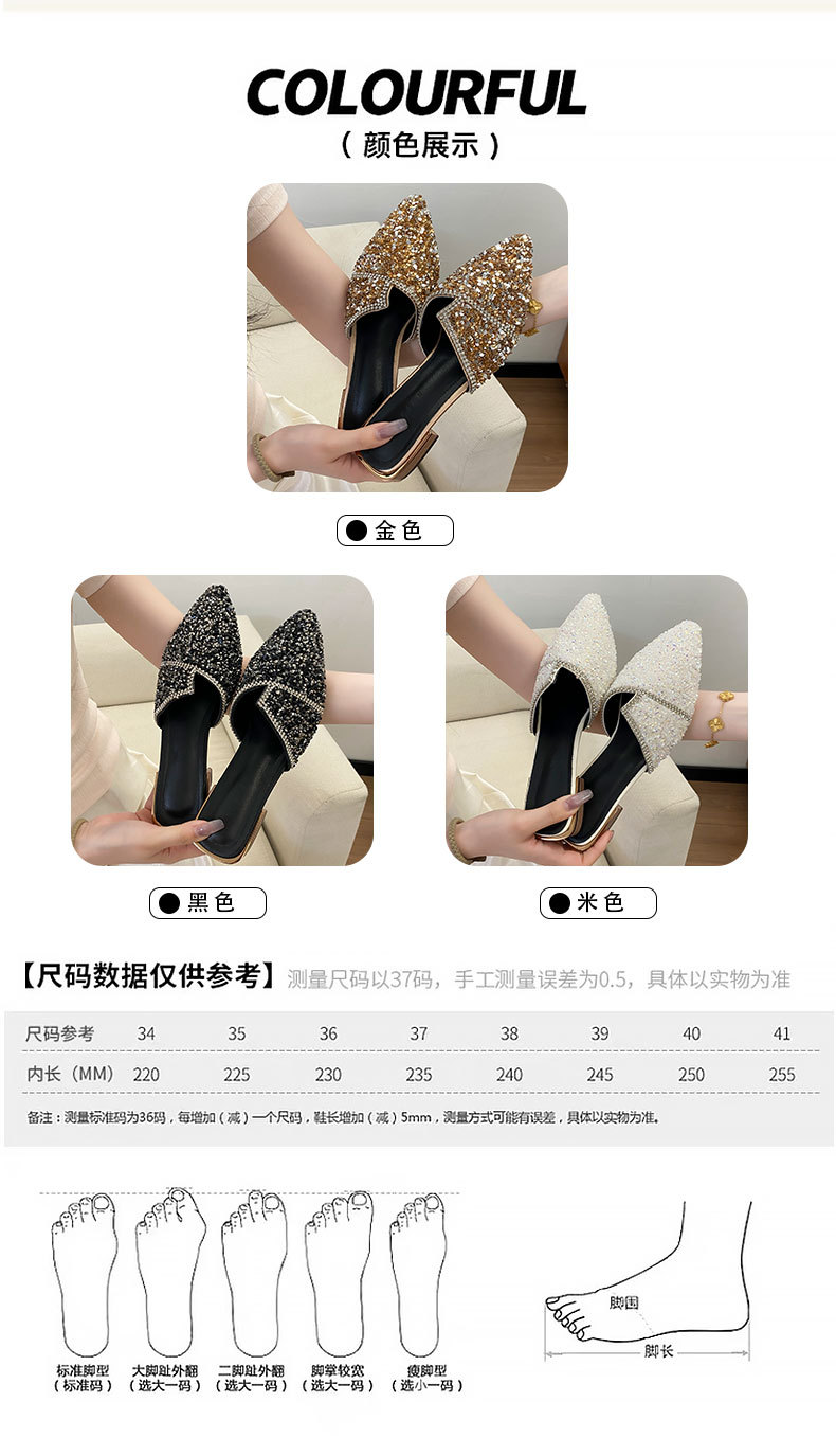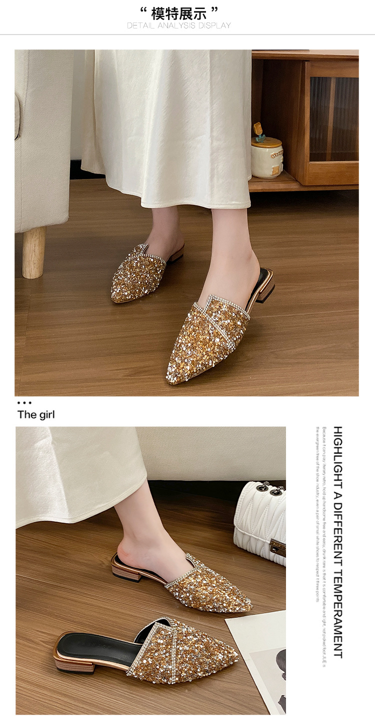 여성용 바오터우 하프 슬리퍼, 여름 아우터, 힐 없는 여성용 슬립온 슈즈, 두꺼운 굽, 뾰족한 발가락 하프 슬리퍼, 여성용 대형 신발 41-42스토어 가기