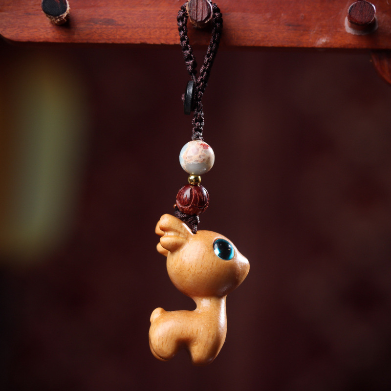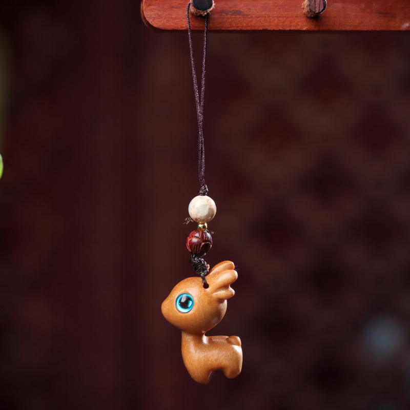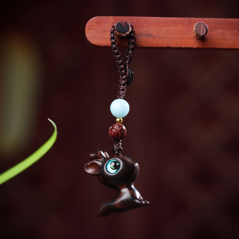 안전하게 가세요 백단 사슴 자동차 키 체인 펜던트 절묘한 휴대 전화 펜던트 남성과 여성 커플 키 펜던트 체인스토어 가기