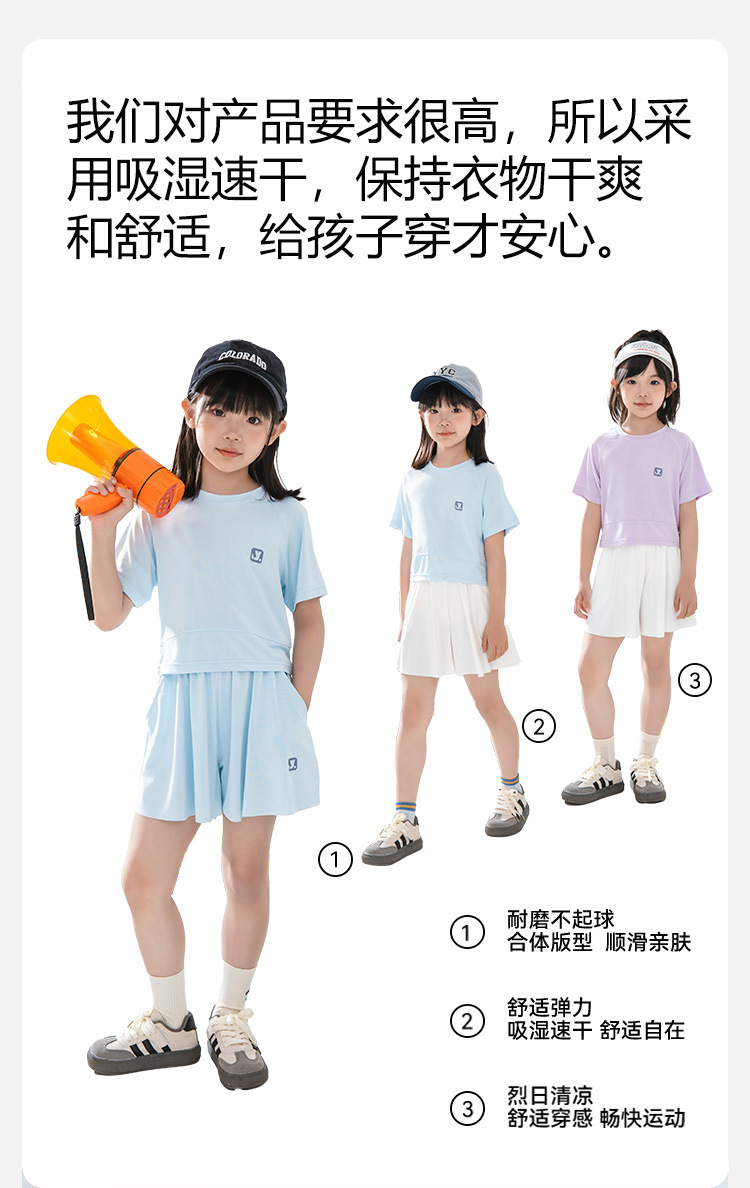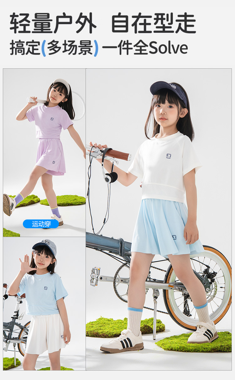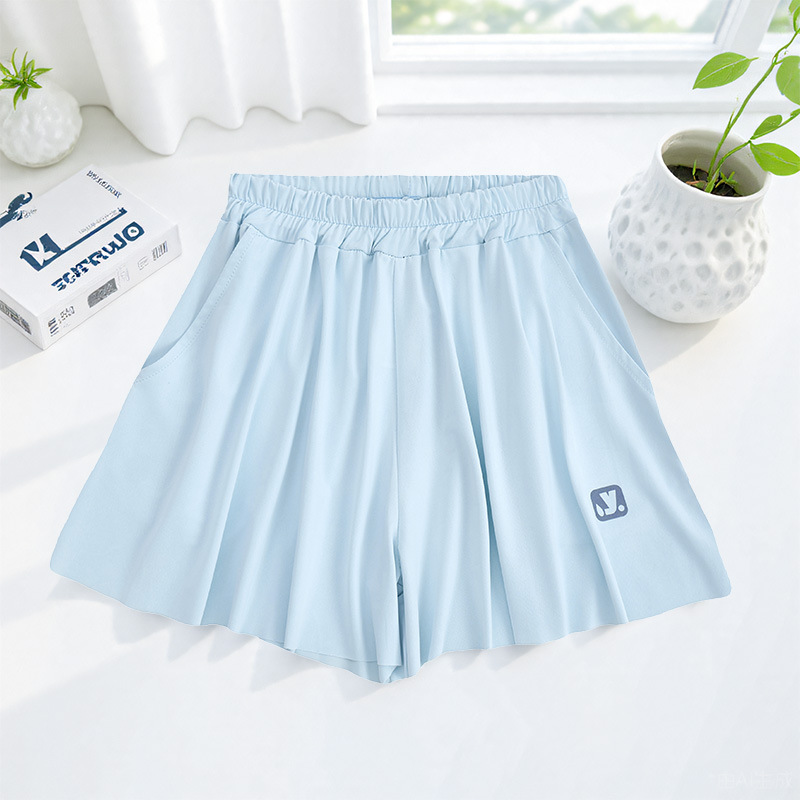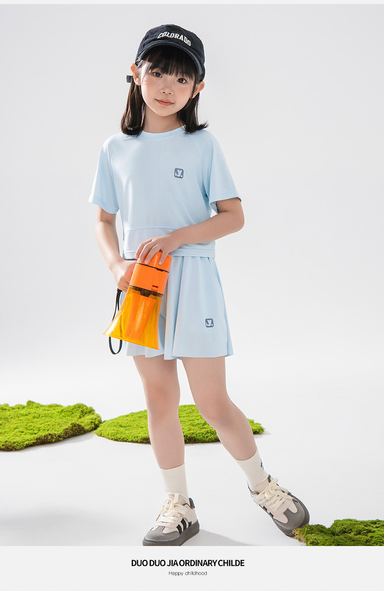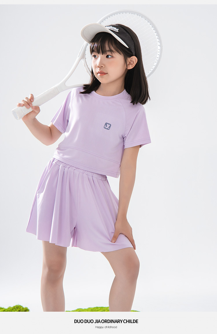 여름 소녀 얼음 실크 슬리브 짧은 티셔츠와 바지 스커트 투피스 세트 어린이의 새로운 멋진 가정 의류 세트 단색 신선한스토어 가기
