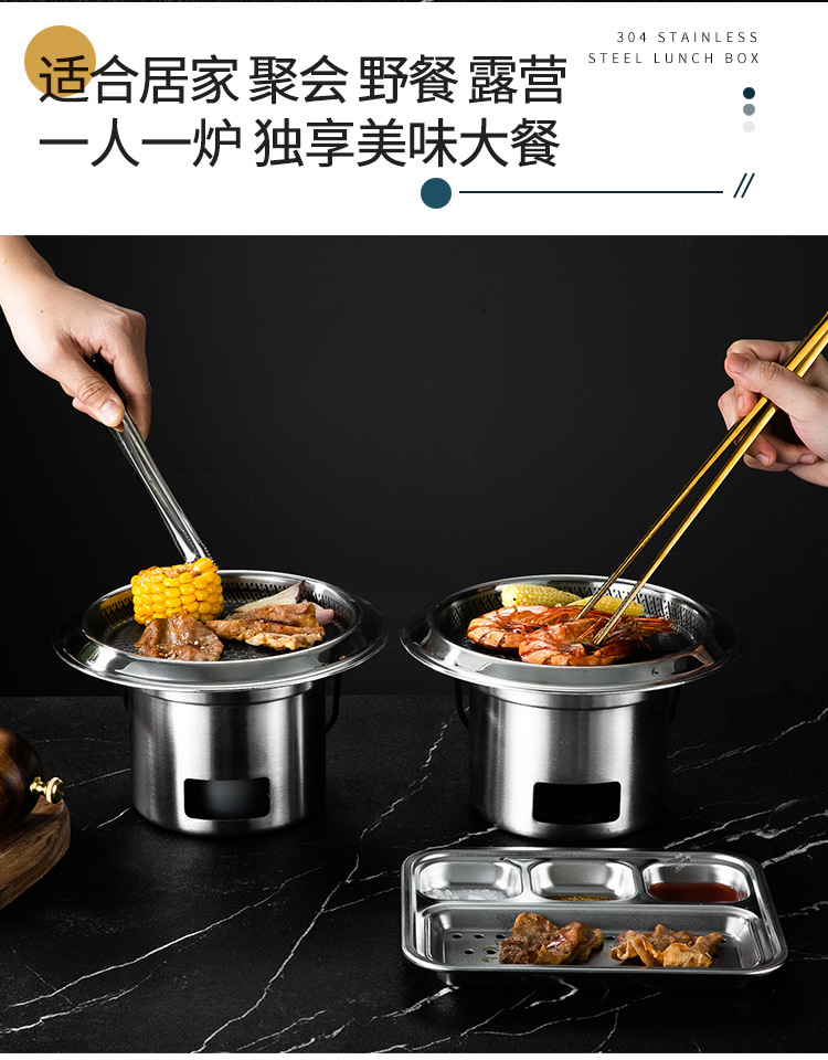 미니 소형 숯불로, 야외 휴대용 스테인레스 스틸 1인용 바베큐 숯불로, 숯불로, 차를 끓이는 한국식 바베큐 숯불로스토어 가기