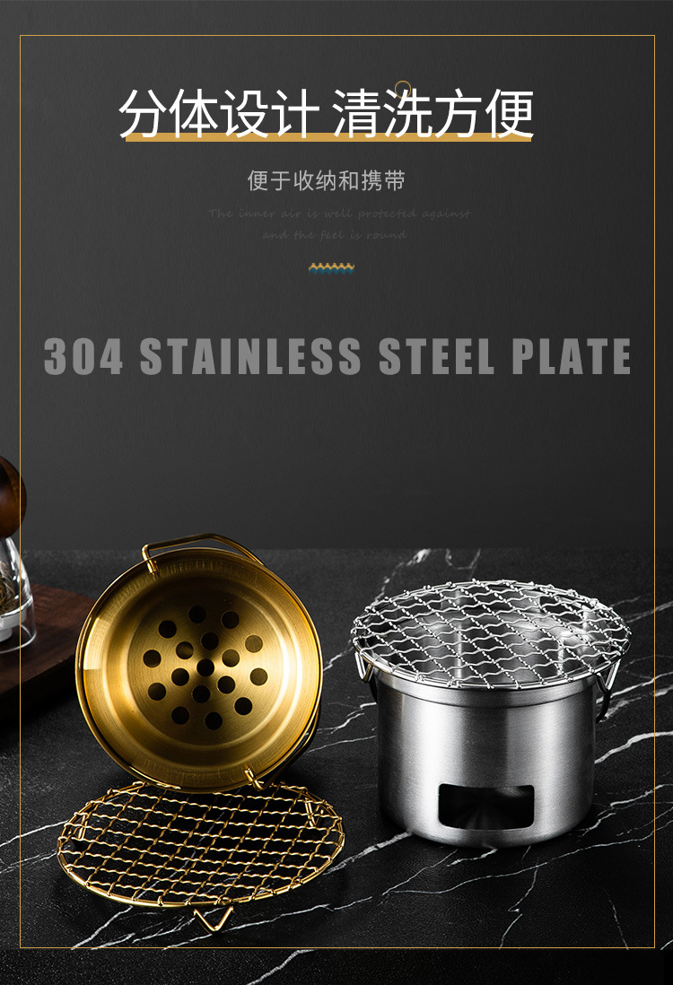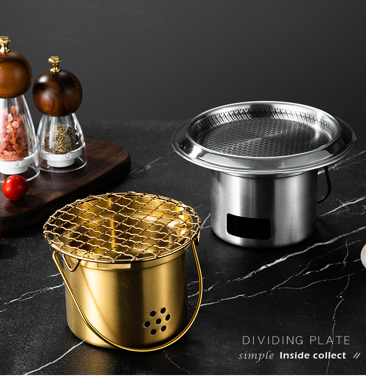 미니 소형 숯불로, 야외 휴대용 스테인레스 스틸 1인용 바베큐 숯불로, 숯불로, 차를 끓이는 한국식 바베큐 숯불로
