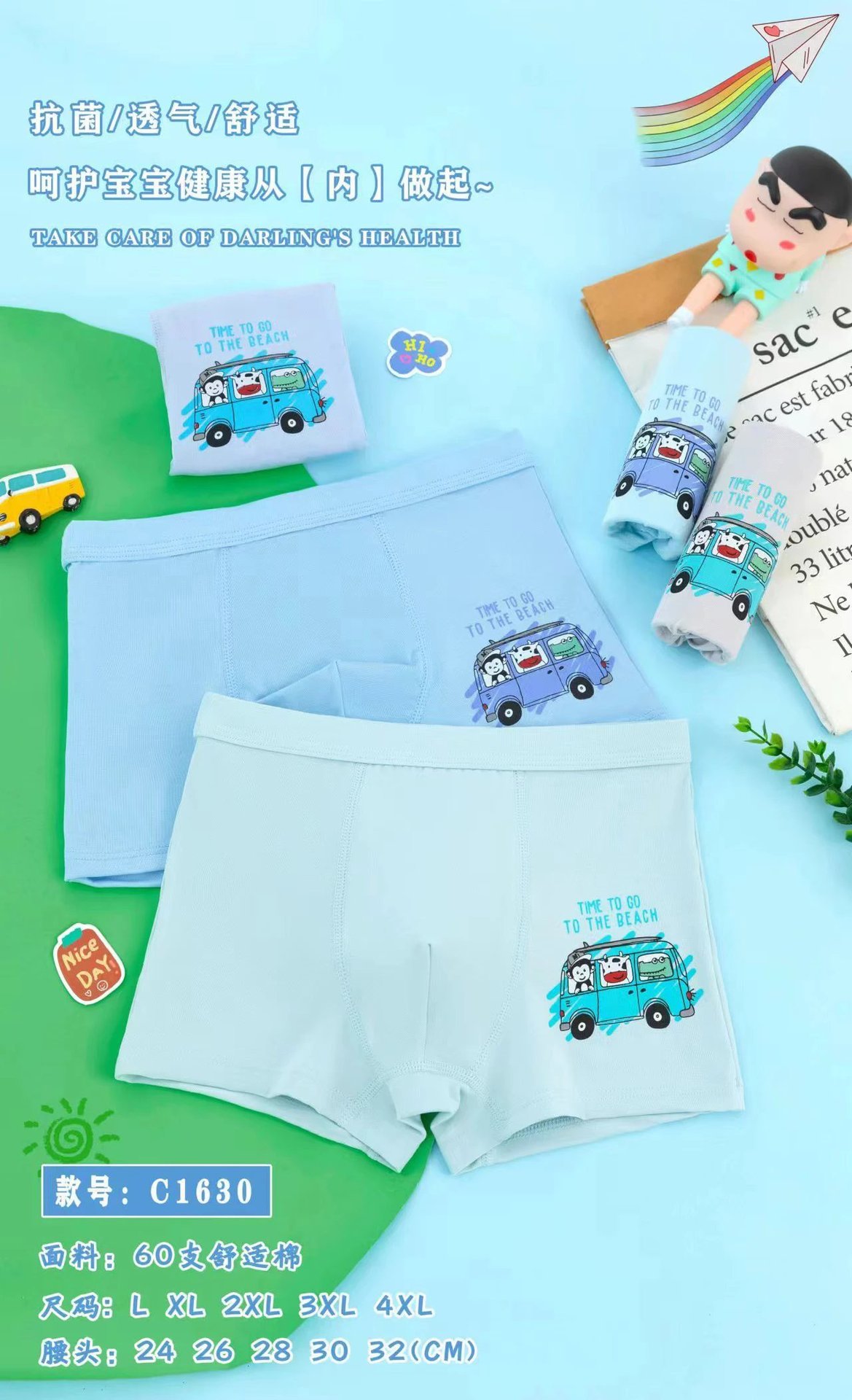 C1630#60支棉10A底裆男童内裤@L~2XL(2XL=28*22)混色10条