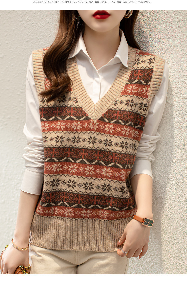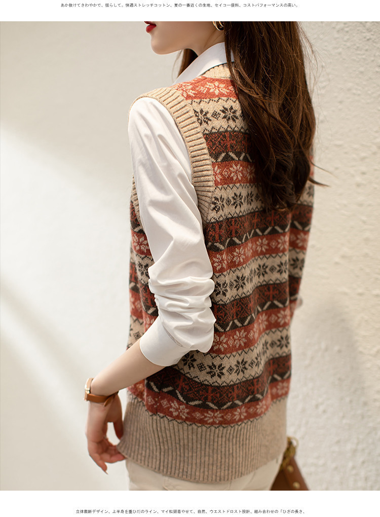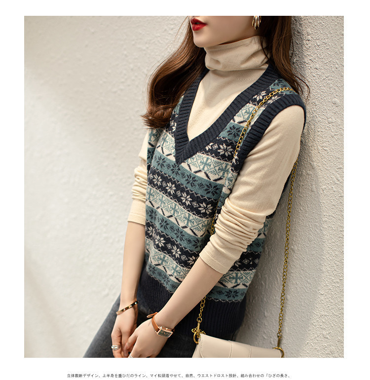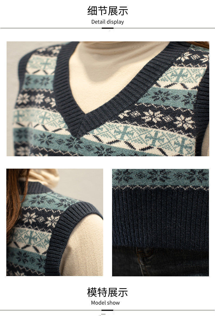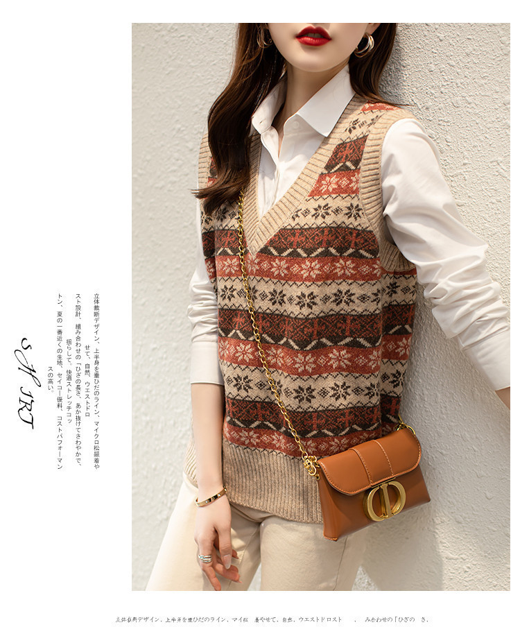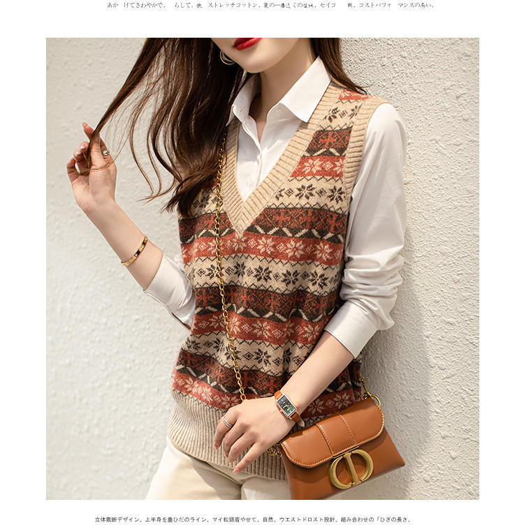여성용 조끼 2025 가을, 겨울 새로운 스타일 니트 자카드 조끼 컬러 블록 기하학 패턴 민소매 니트 바닥 셔츠스토어 가기