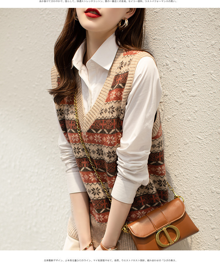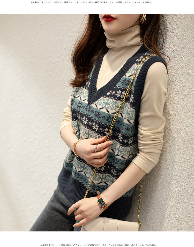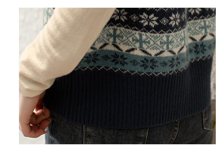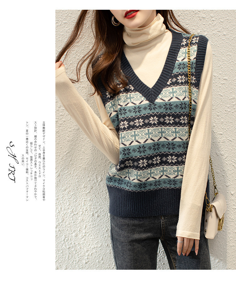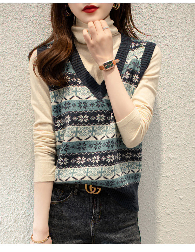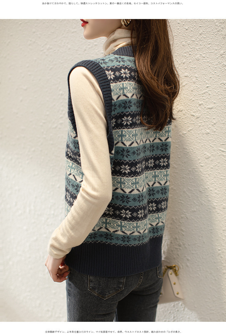 여성용 조끼 2025 가을, 겨울 새로운 스타일 니트 자카드 조끼 컬러 블록 기하학 패턴 민소매 니트 바닥 셔츠스토어 가기