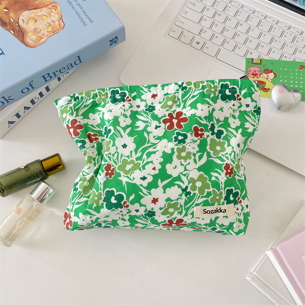 33261 녹색 꽃 화장품 가방 여성용 핸드 백 휴대용 보관 가방 립스틱 에어 쿠션 나들이 보관 가방스토어 가기