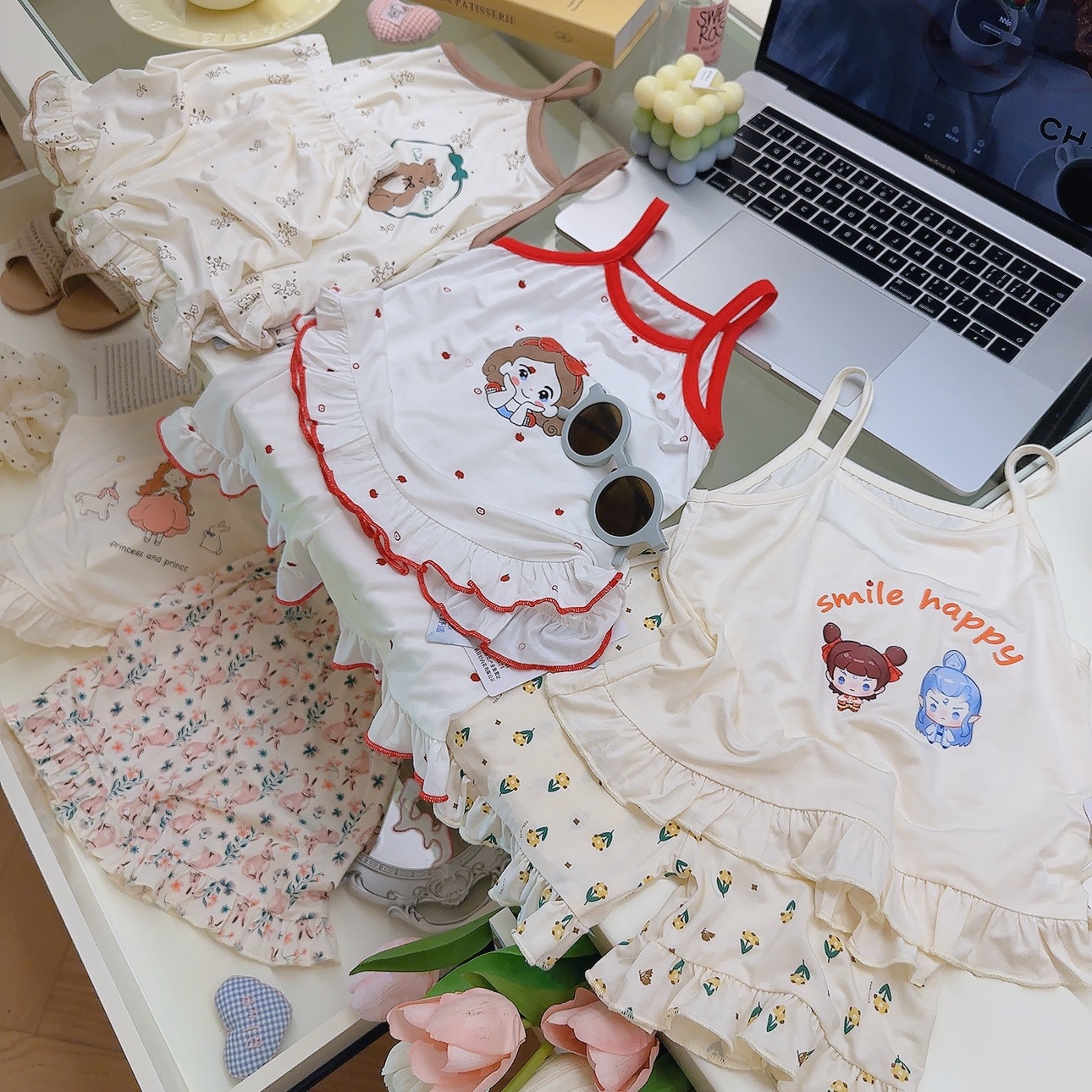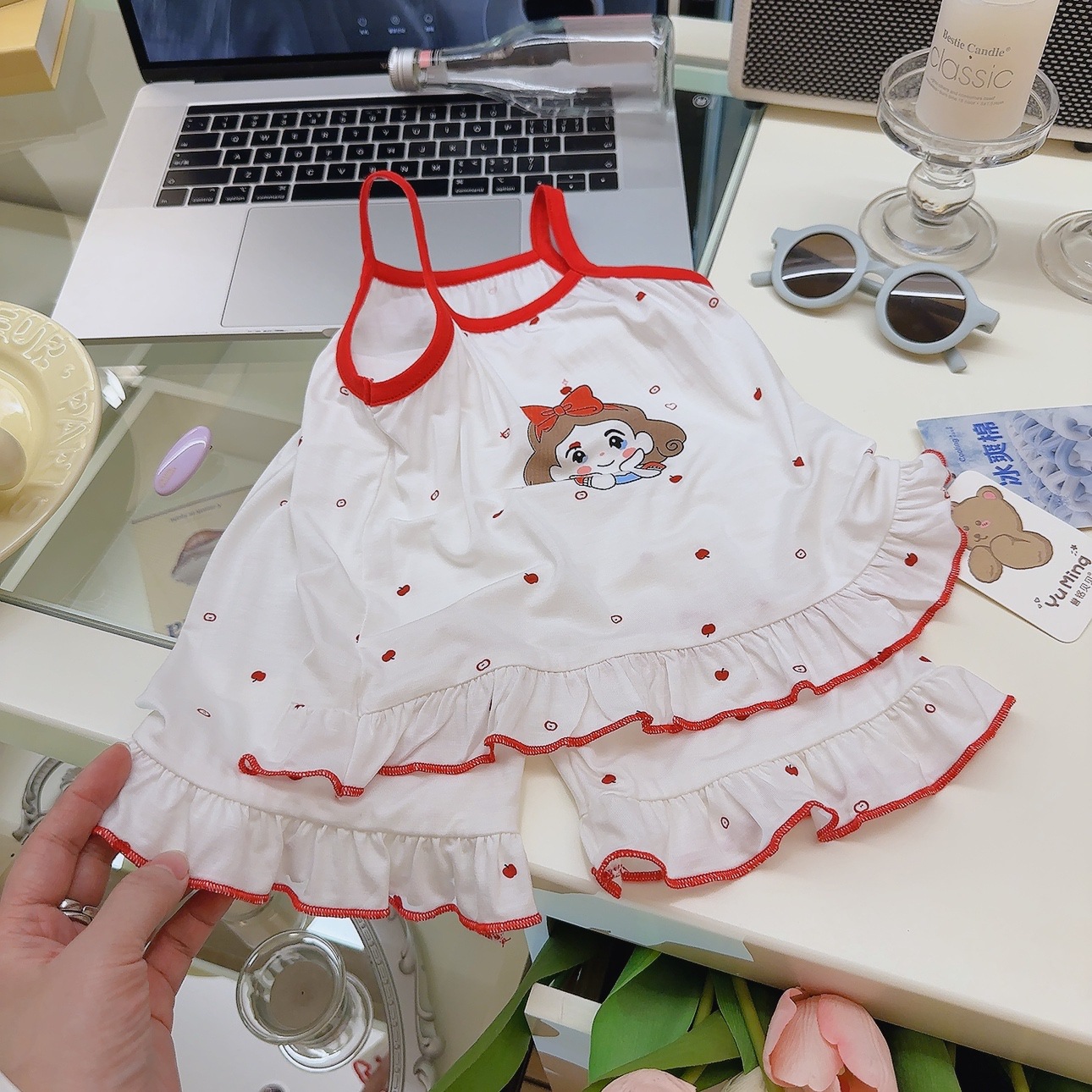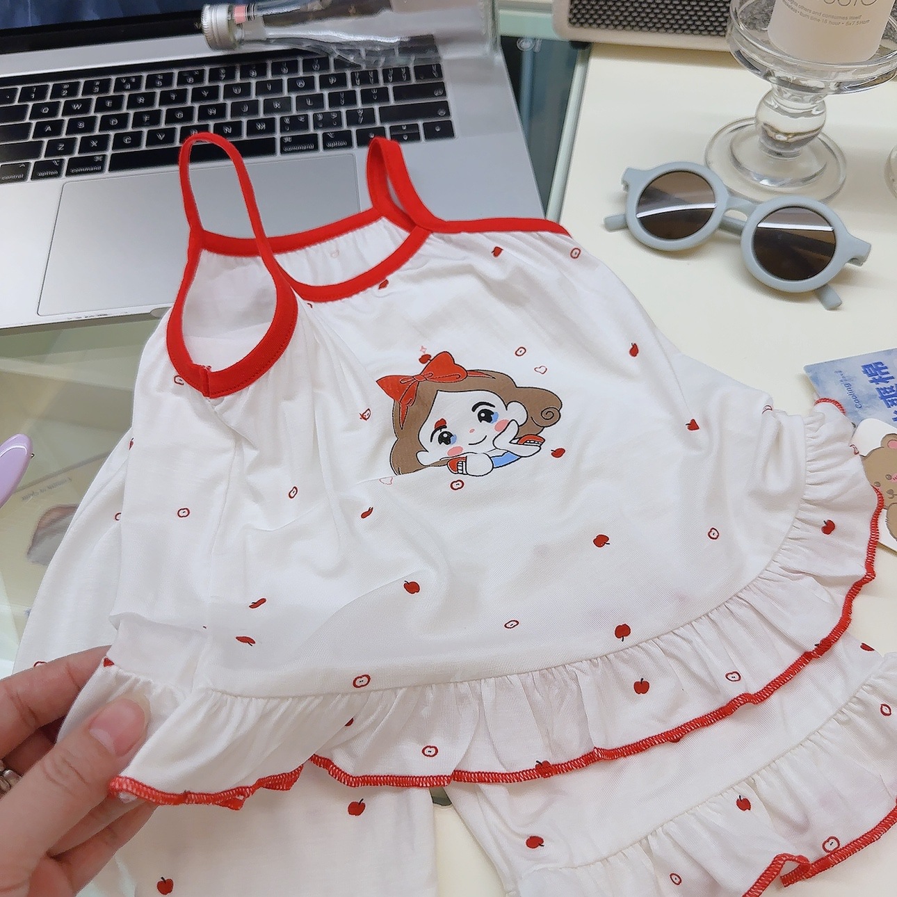 어린이 잠옷 여아 여름 멜빵바지 세트 아기 모달 홈웨어 A급 의류 어린이용스토어 가기