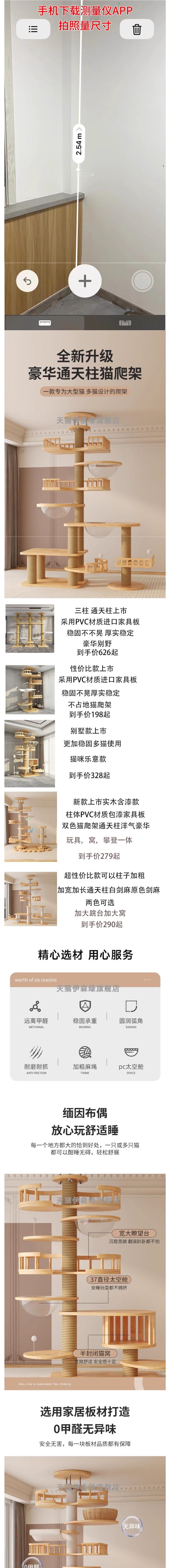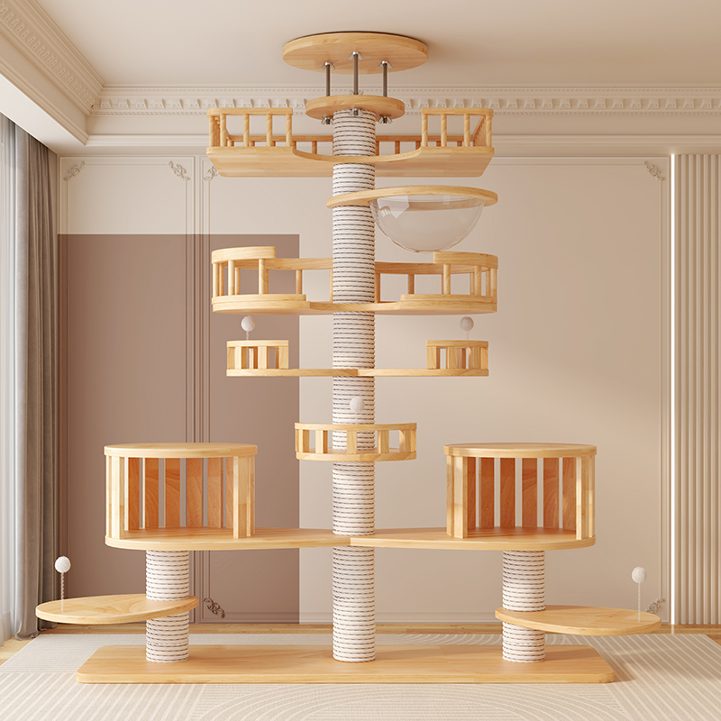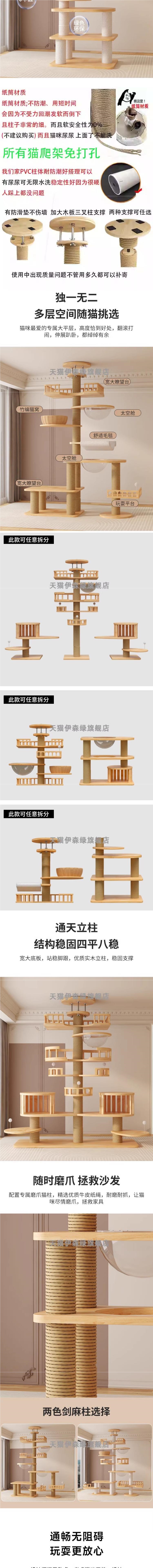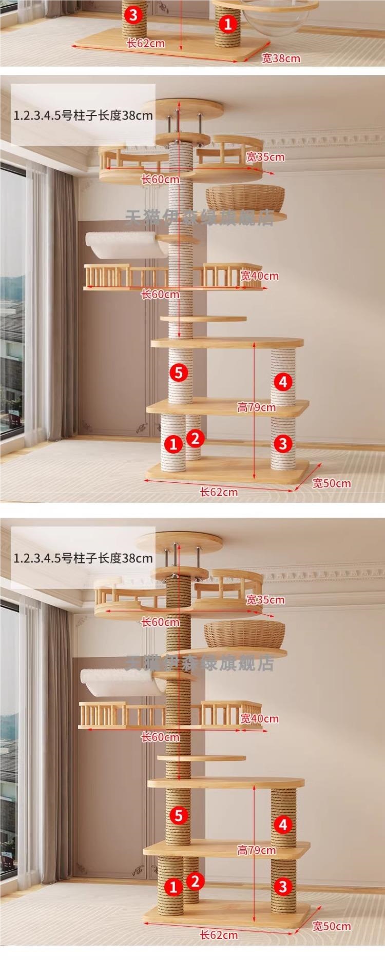 고양이 클라이밍 프레임, 고양이 둥지, 고양이 트리, 일체형 나무 줄기, 공간을 차지하지 않음, 대형 고양이 원목 천장부터 바닥까지 고양이 클라이밍 프레임, 천둥스토어 가기