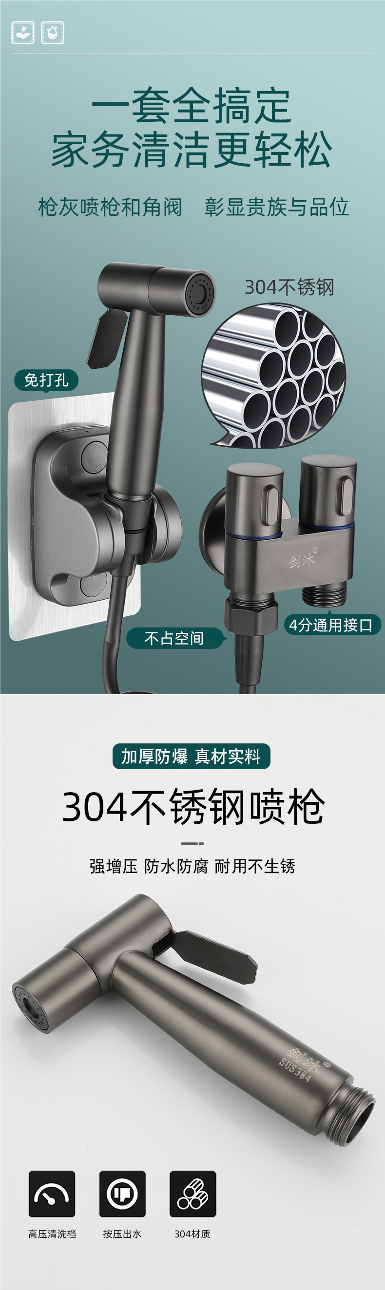 • (건 애쉬) 스프레이 건 + 2m 텔레스코픽 튜브 + 브래킷 다기능 수도꼭지