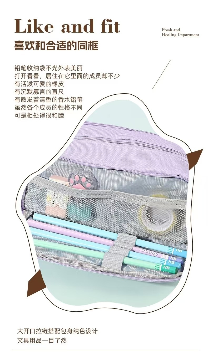 이중층 이중창 대용량 연필 가방 단색 간단한 문구 상자 초등 및 중등 학생을위한 다기능 연필 상자 보관 가방스토어 가기