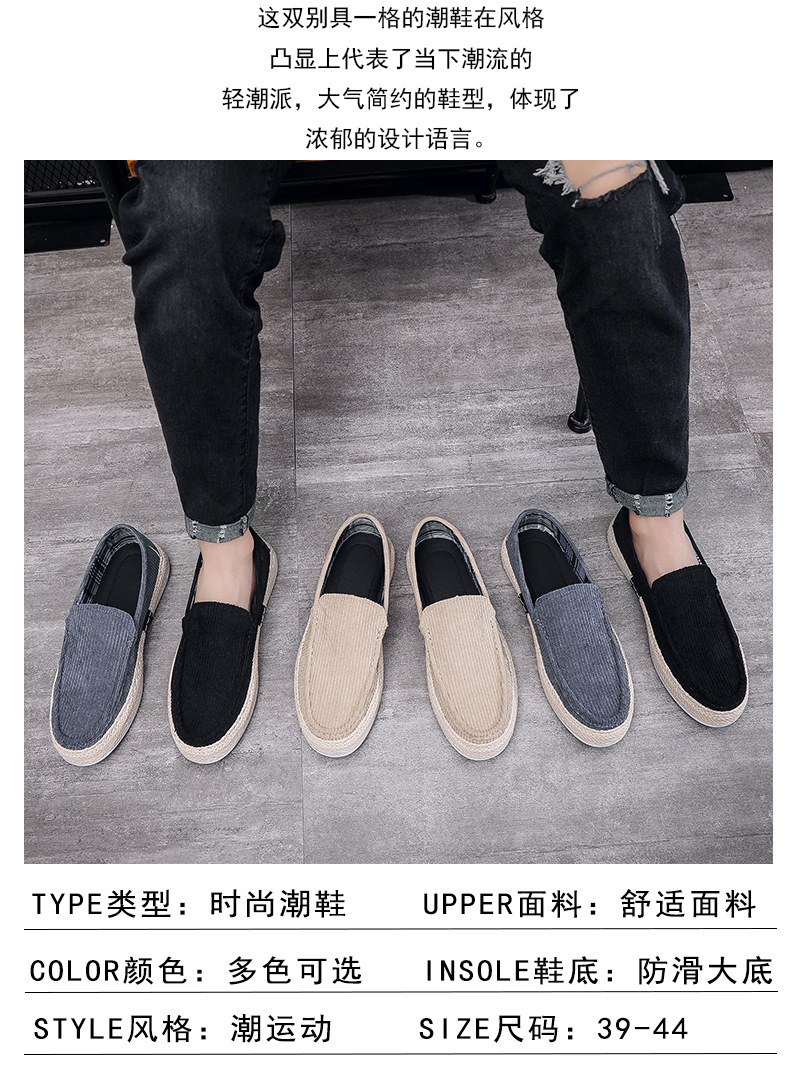 신발 남성 여름 슬립온 신발 부드러운 밑창 코듀로이 신발 남성 로우탑 통기성 캐주얼 신발 남성스토어 가기