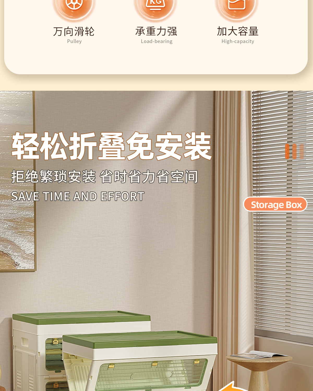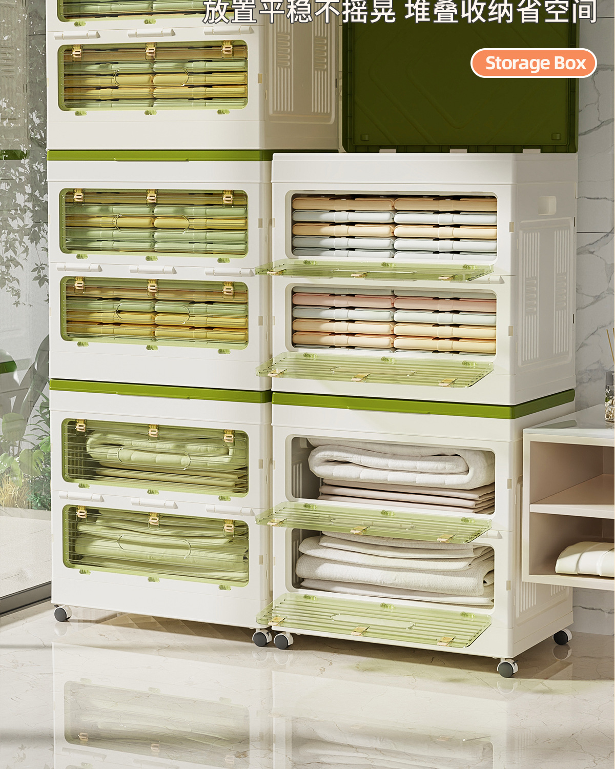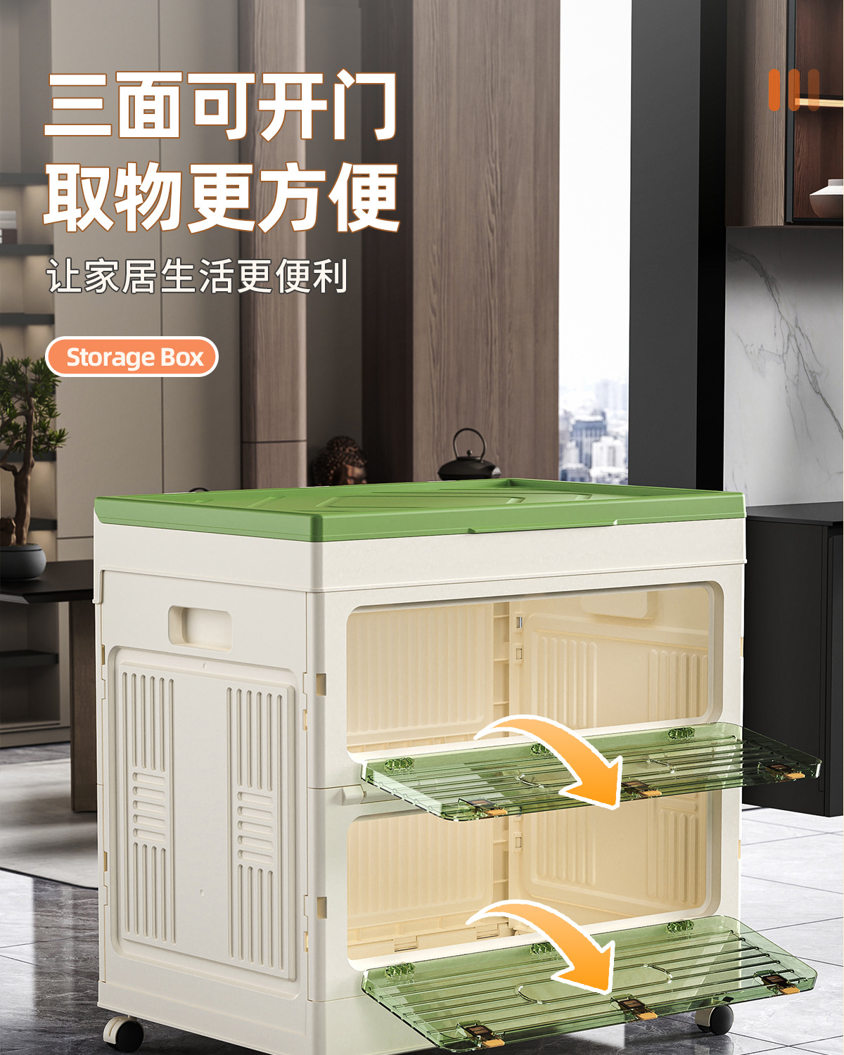 가정용 다기능 접이식 보관함 의류 이불 스낵 장난감 3 도어 보관 캐비닛 플립 탑 보관함