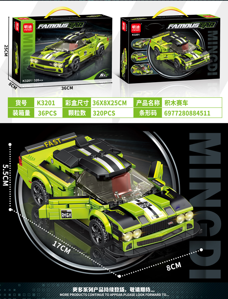 Mindy 새로운 K3203 빌딩 블록 레이싱 시리즈 조립 자동차 스포츠카 모델 소년 장난감 메커니즘 선물스토어 가기