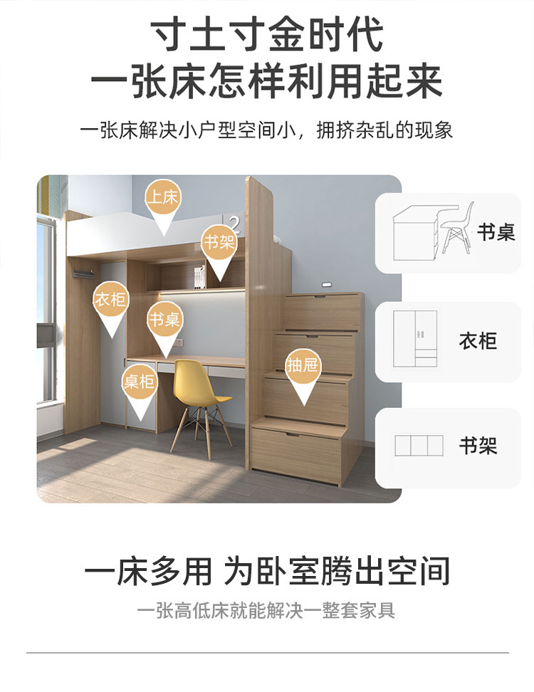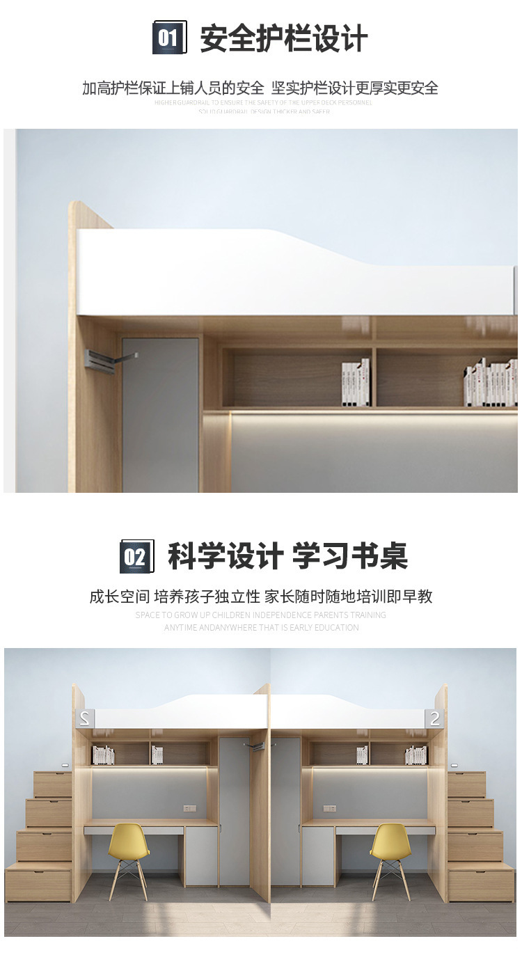 • 1.0m 침대 상단 및 하단 테이블(사다리 캐비닛 포함)