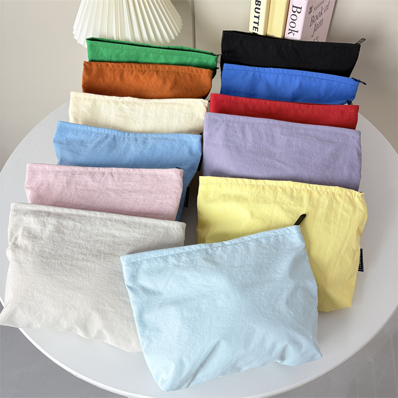 새로운 나일론 방수 화장품 가방 간단한 단색 여성용 클러치 백 대용량 학생 지퍼 세면 용품 보관 가방