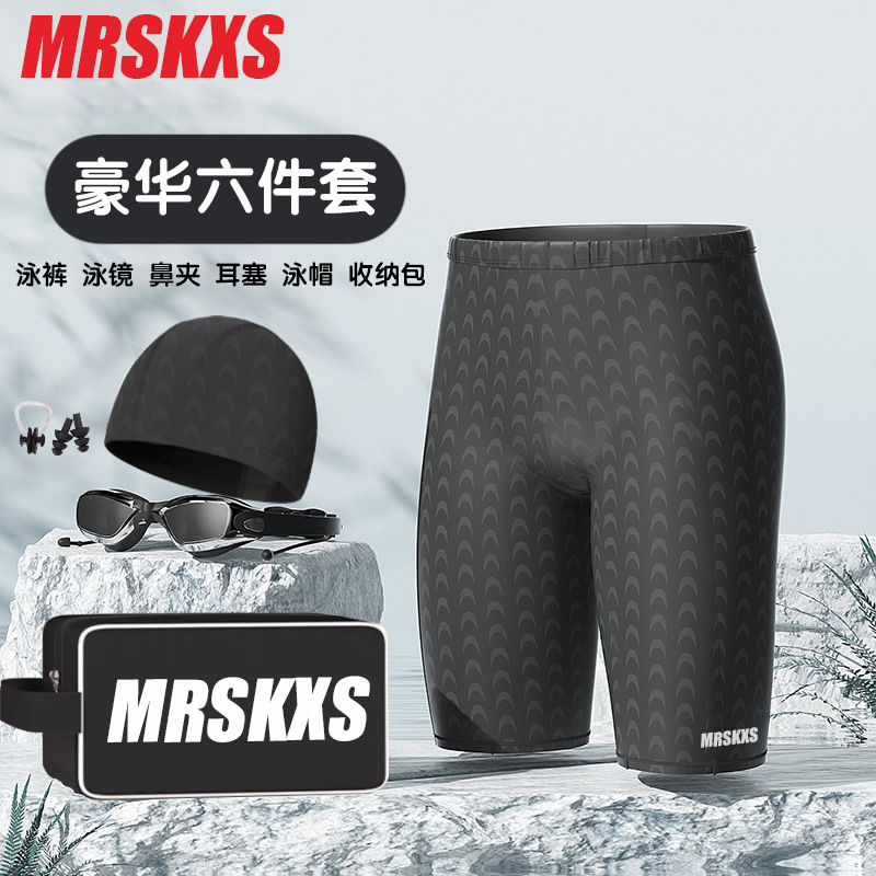 수영 바지 2025 새로운 성인 수영 바지 5 점 상어 가죽 수영 바지 남자 수영 고글 수영 모자 수영 바지 세트