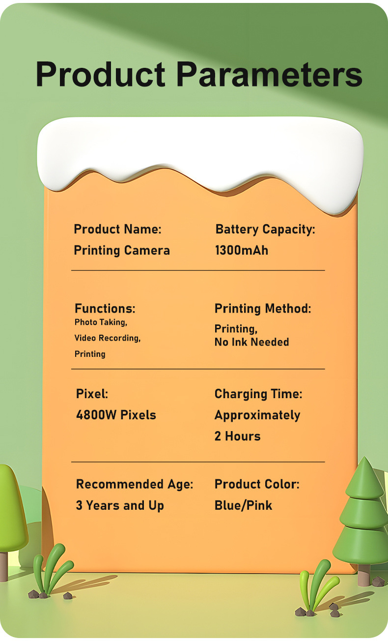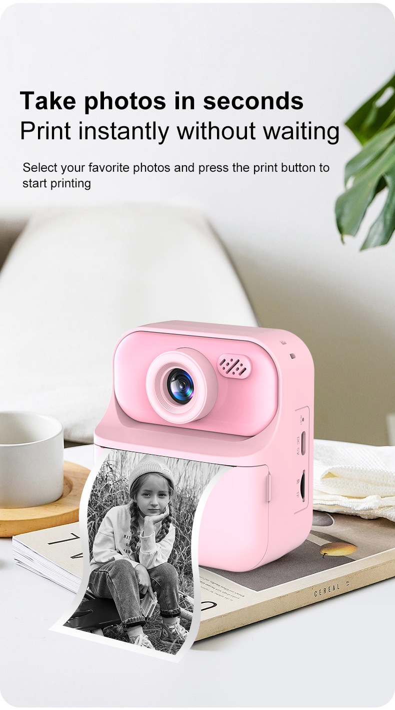 2.4inch 컬러 스크린이 장착된 전면 및 후면 고화질 듀얼 카메라를 갖춘 국경 간 신제품 인기 E8 즉석 카메라 어린이용 인쇄 카메라