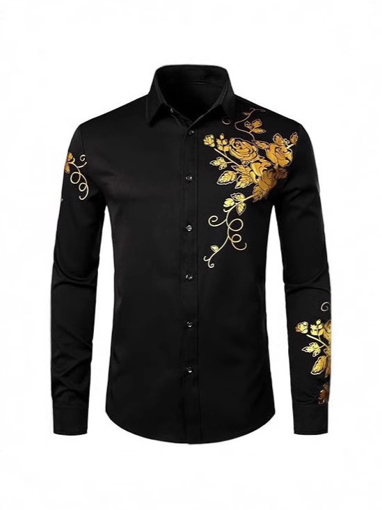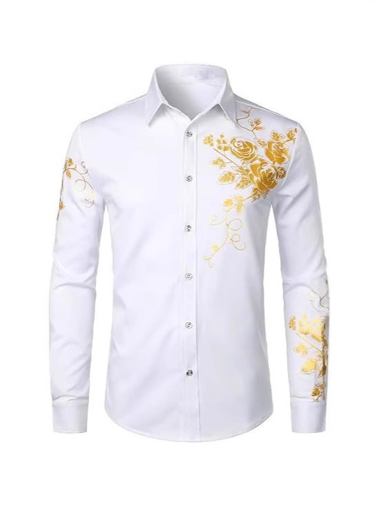 2025 크로스보더 남성 탑 마이크로 탄성 비즈니스 캐주얼 꽃 프린트 봄, 가을 정장 남성 긴팔 셔츠