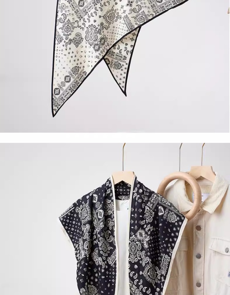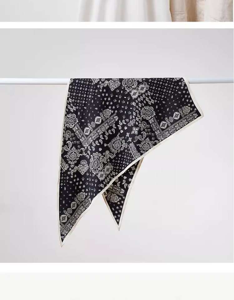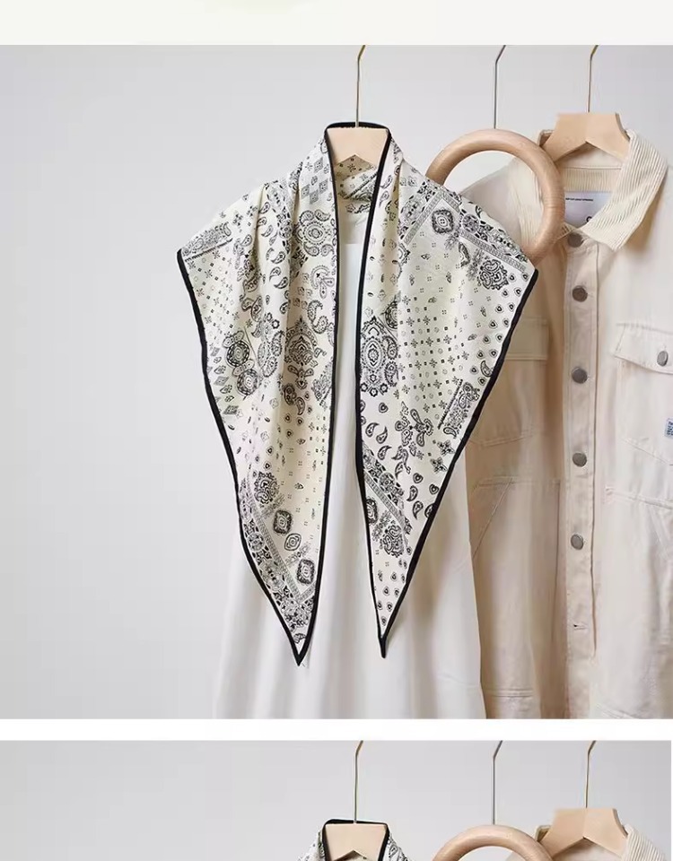腰果花丝巾2025新款百搭丝巾夏季氛围感穿搭头巾斜纹绸凉感斜角巾