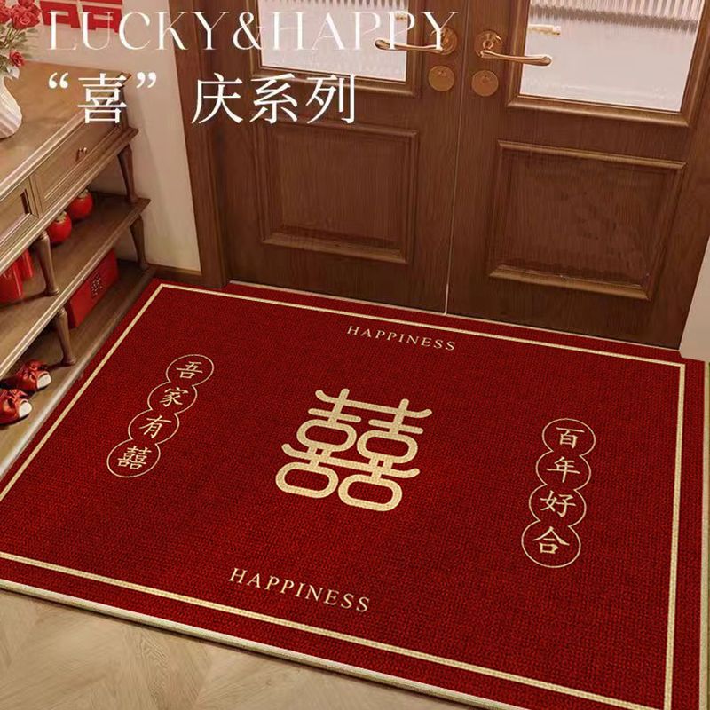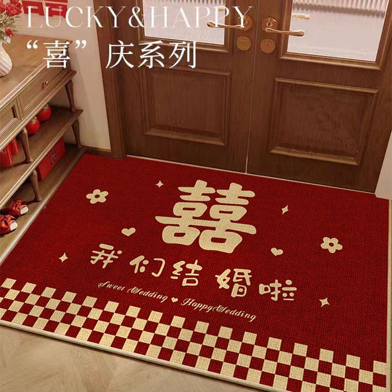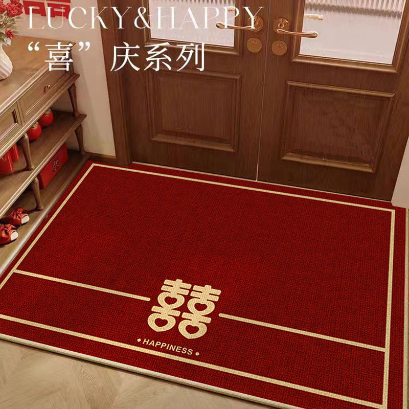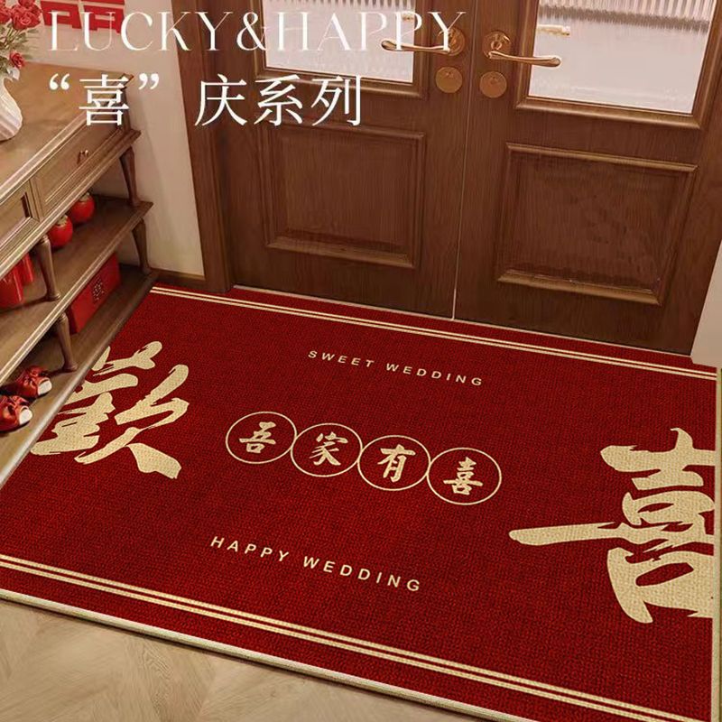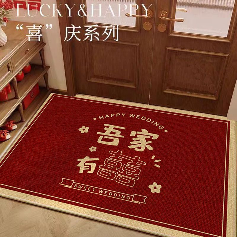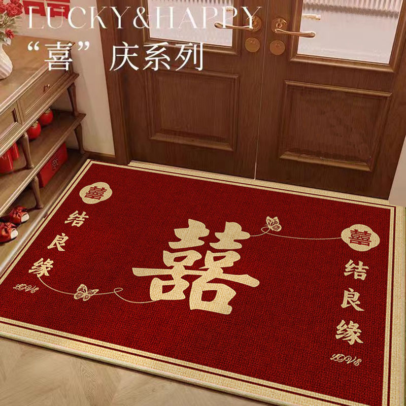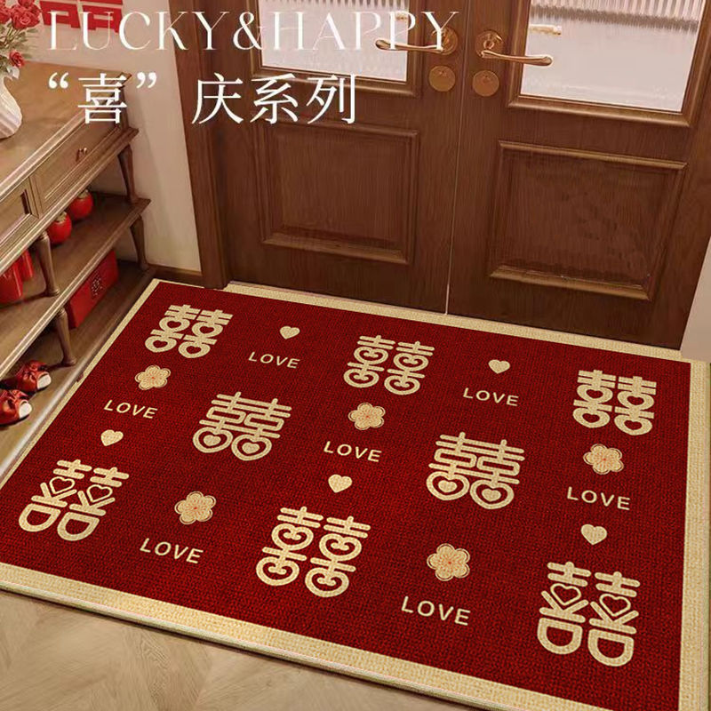 결혼식 바닥 매트 크리스탈 벨벳 빨간색 행복한 단어 미끄럼 방지 바닥 매트 홈 거실 입구 문 흡수성 및 먼지 방지 카펫