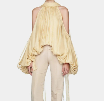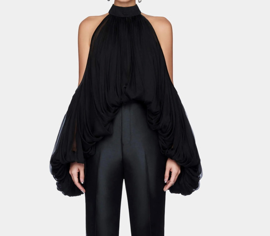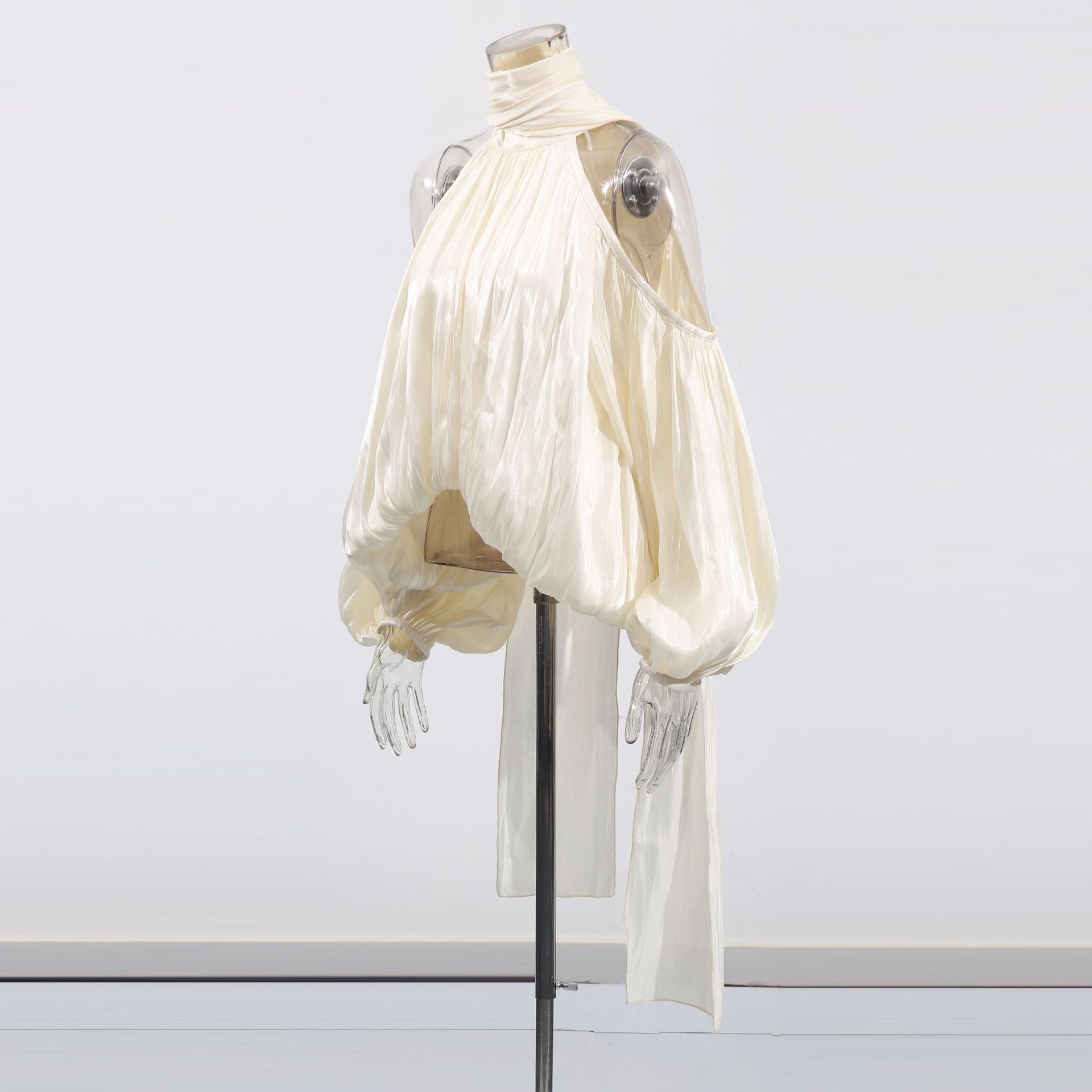 프렌치 스타일의 러플 오프숄더 섹시 랜턴 슬리브 쉬폰 셔츠 2025년 신상 가을 라운드넥 솔리드 컬러 셔츠스토어 가기