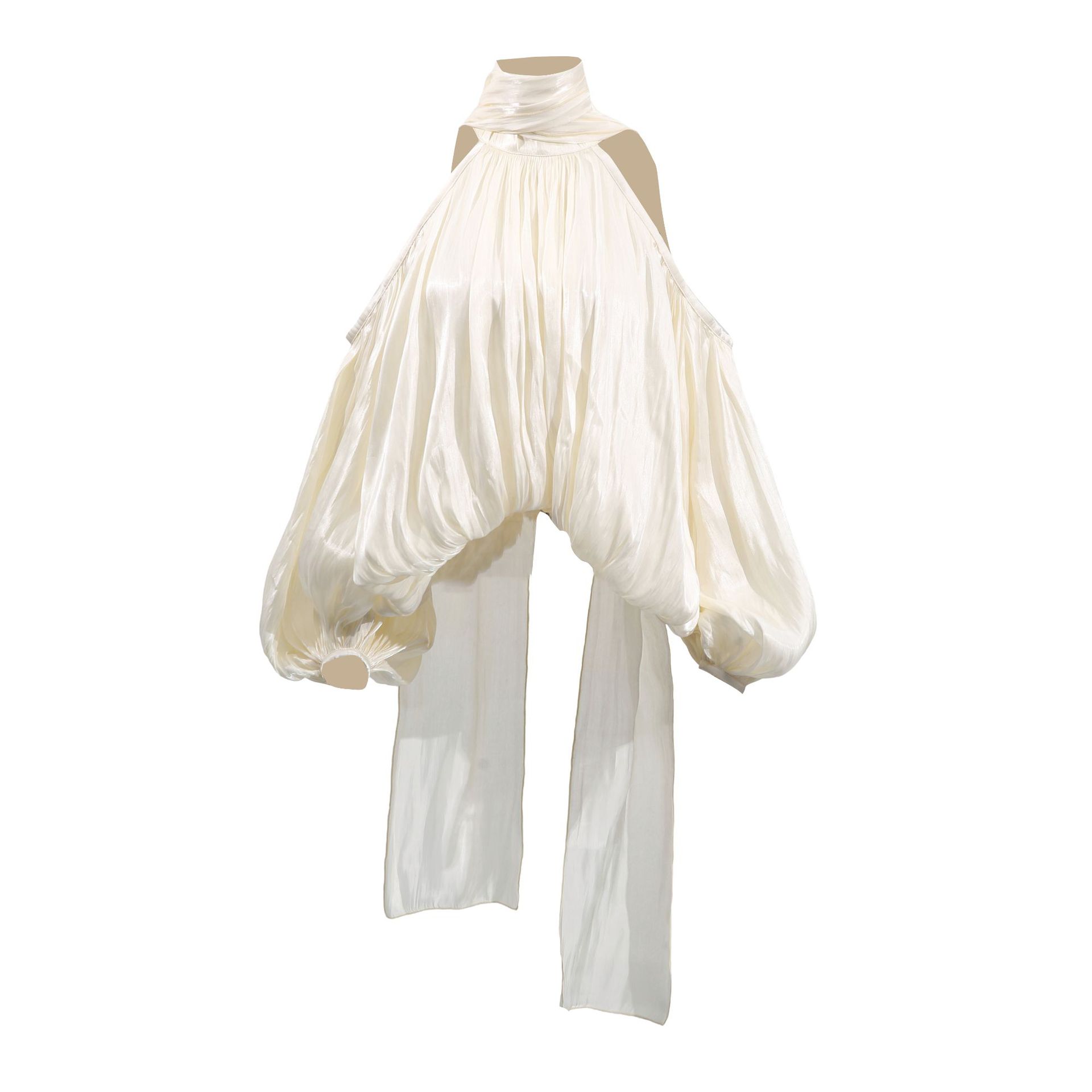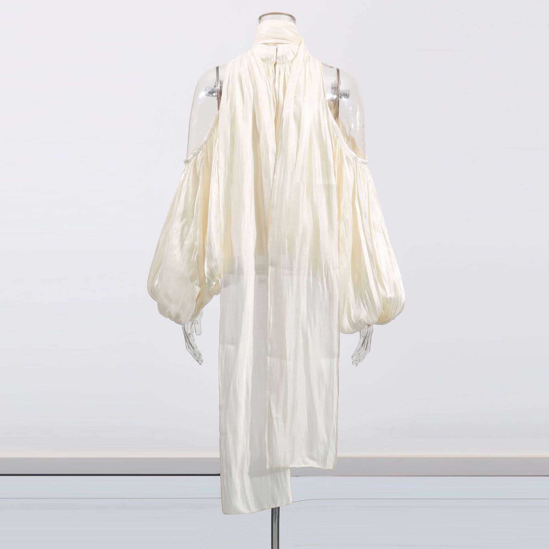 프렌치 스타일의 러플 오프숄더 섹시 랜턴 슬리브 쉬폰 셔츠 2025년 신상 가을 라운드넥 솔리드 컬러 셔츠