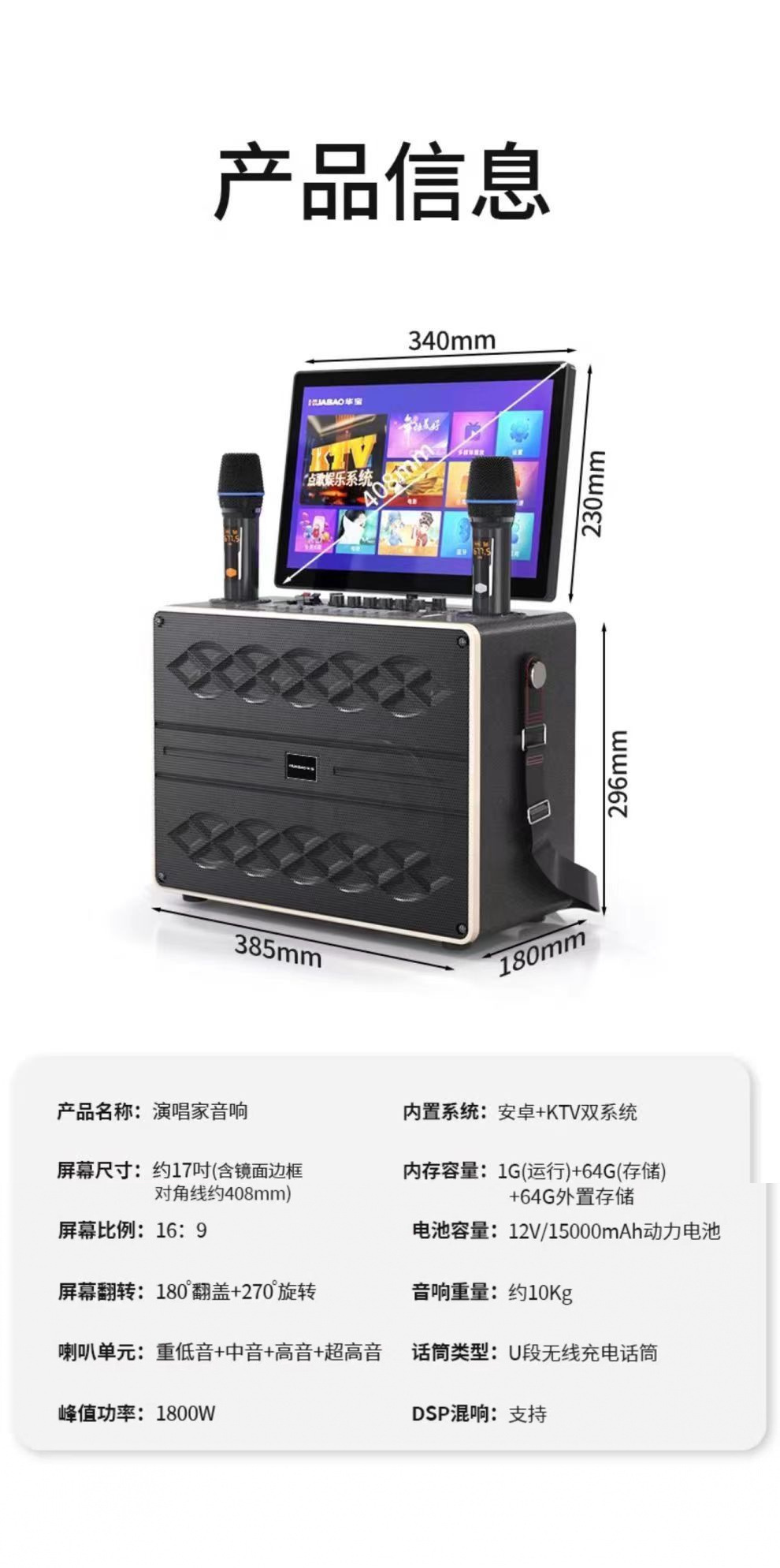 • 20inch 블루투스 버전 + 충전 마이크 2개 + 32GU 디스크 + 스탠드