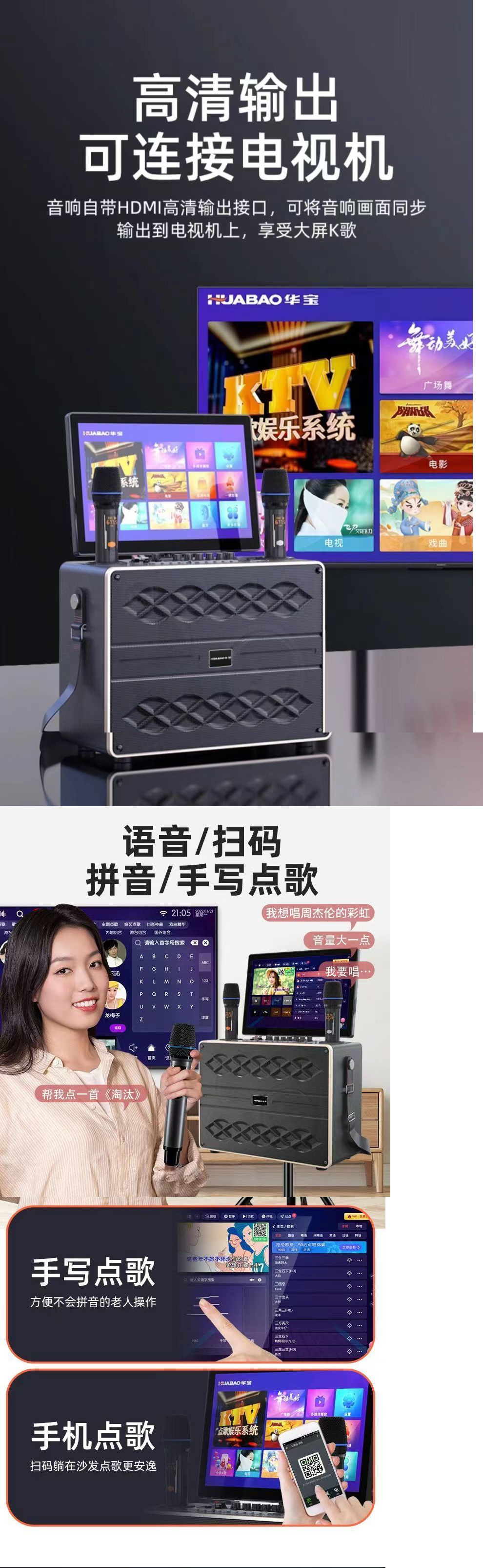 새로운 Huabao 가족 KTV 오디오 세트 노래방 기계 터치 스크린 올인원 홈 노래방 TV 전체 세트