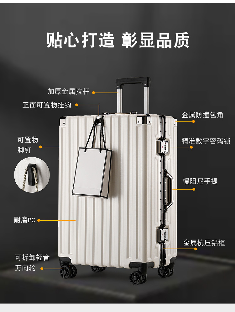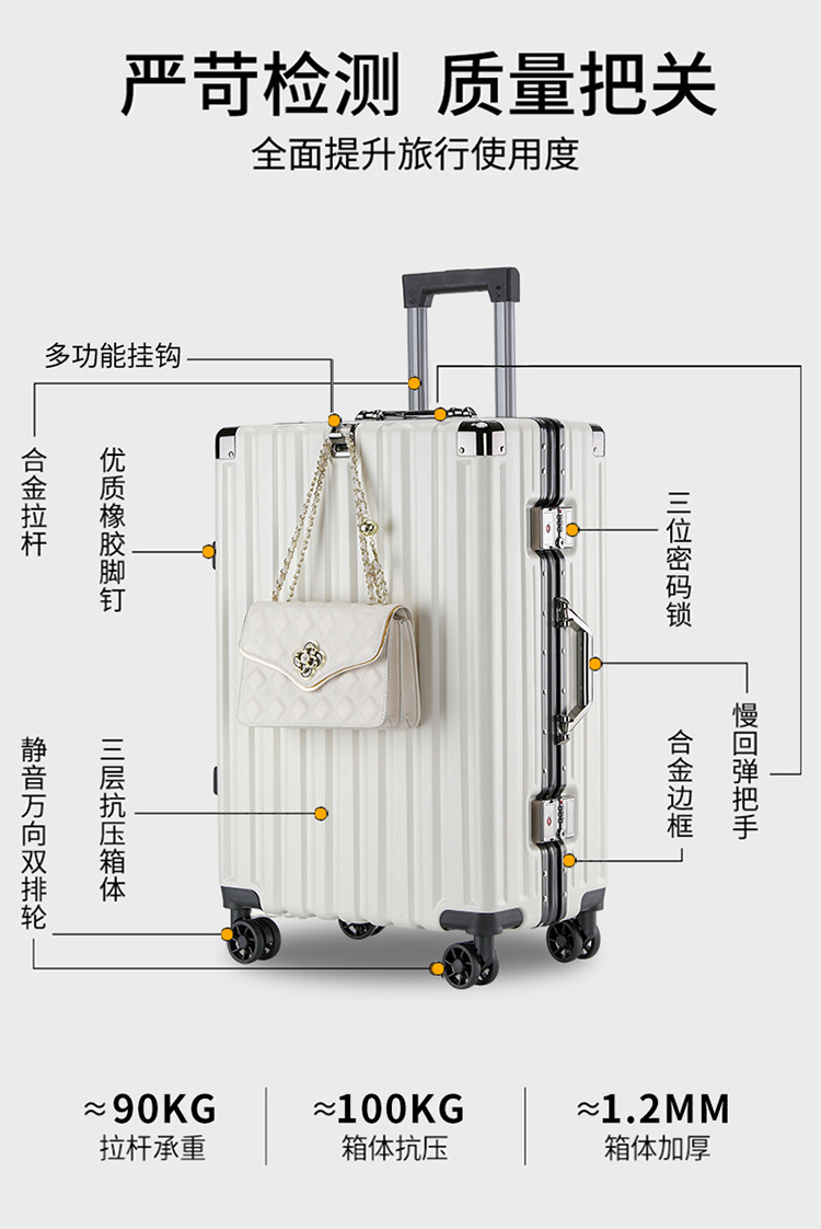 새로운 슈트케이스, 남성용 트롤리 케이스, 두꺼운 무소음 범용 휠, 알루미늄 프레임, 튼튼하고 내구성이 뛰어난 가죽 케이스, 대용량스토어 가기