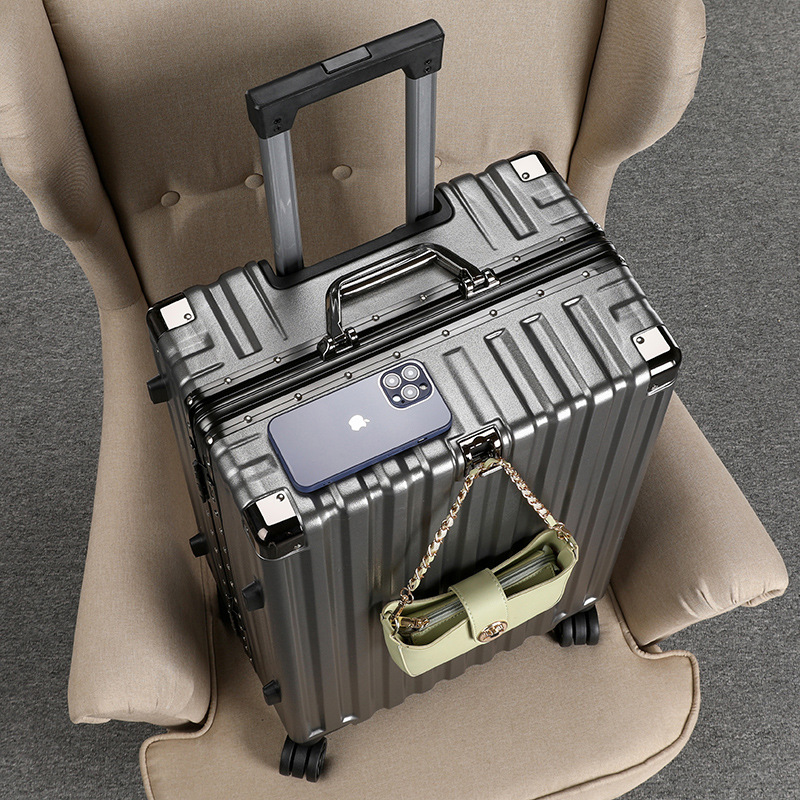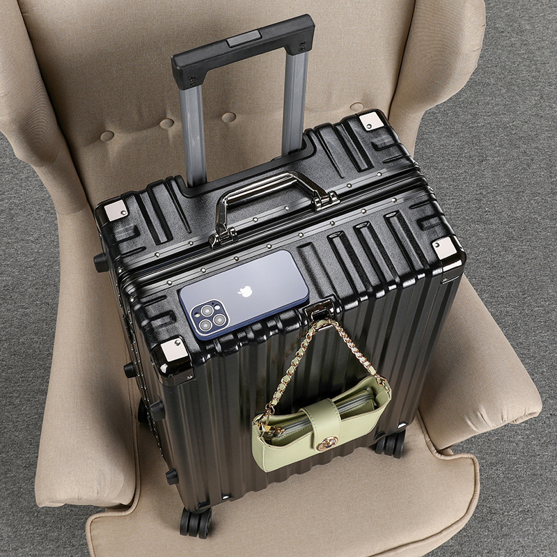 새로운 슈트케이스, 남성용 트롤리 케이스, 두꺼운 무소음 범용 휠, 알루미늄 프레임, 튼튼하고 내구성이 뛰어난 가죽 케이스, 대용량