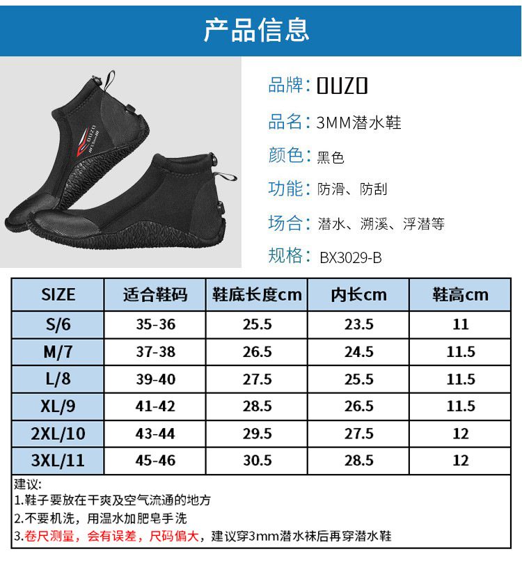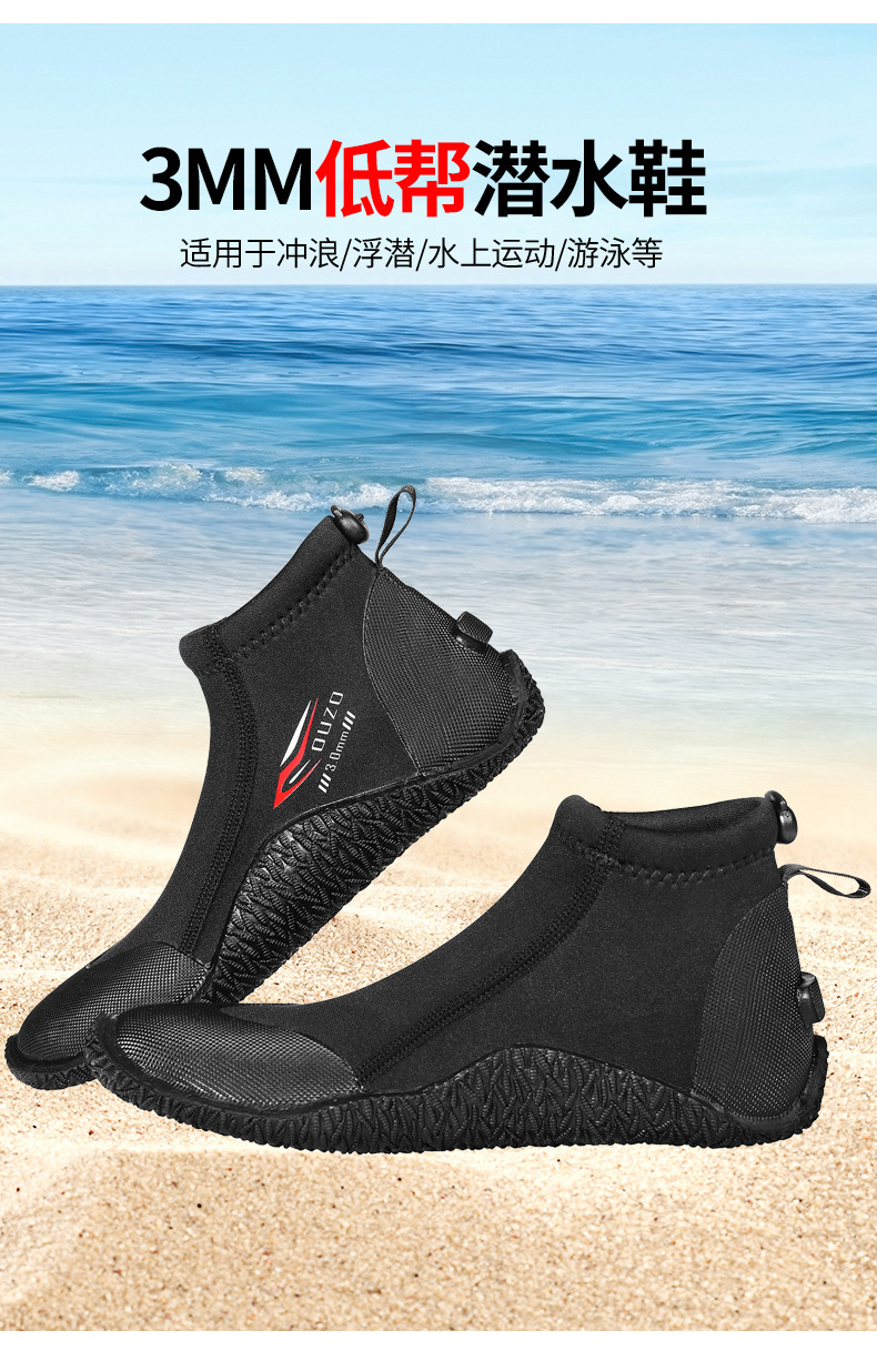 3mm低帮潜水鞋ouzo潜水靴防滑刮耐磨男女涉水沙滩赶海冲浪溯溪鞋