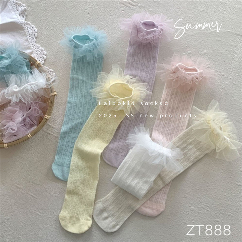 ZT888 여름 얇은 소녀 메쉬 레이스 중간 튜브 양말 메쉬 통기성 모기 방지 양말 긴 튜브 양말 뼈없는면 양말스토어 가기
