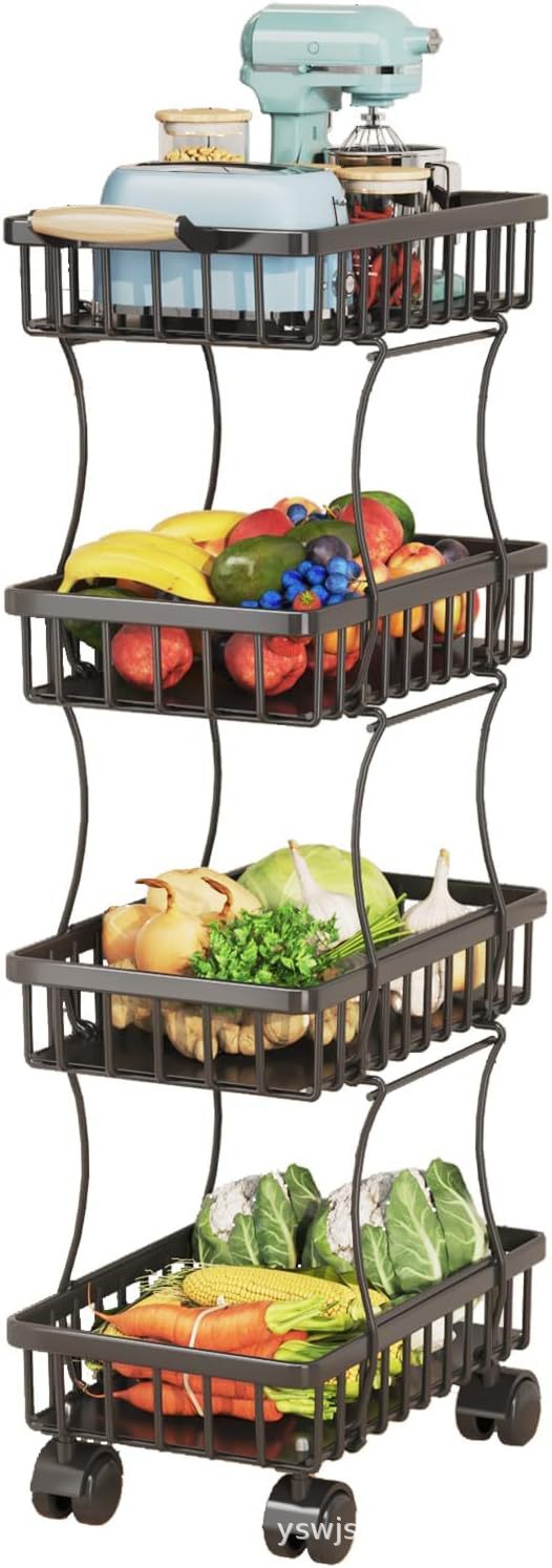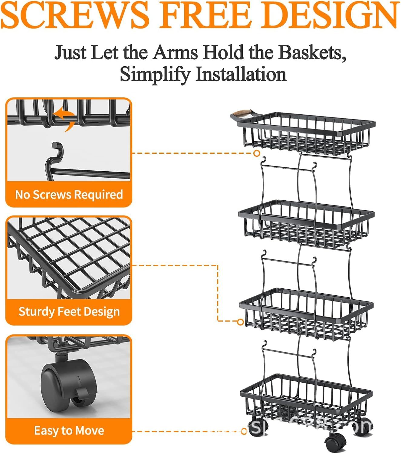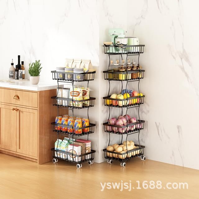 주방 틈새 수납 선반, 바닥에서 천장까지 이어지는 다층 야채 틈새 트롤리, 다기능 가정용 과일 및 잡화 수납 바구니스토어 가기