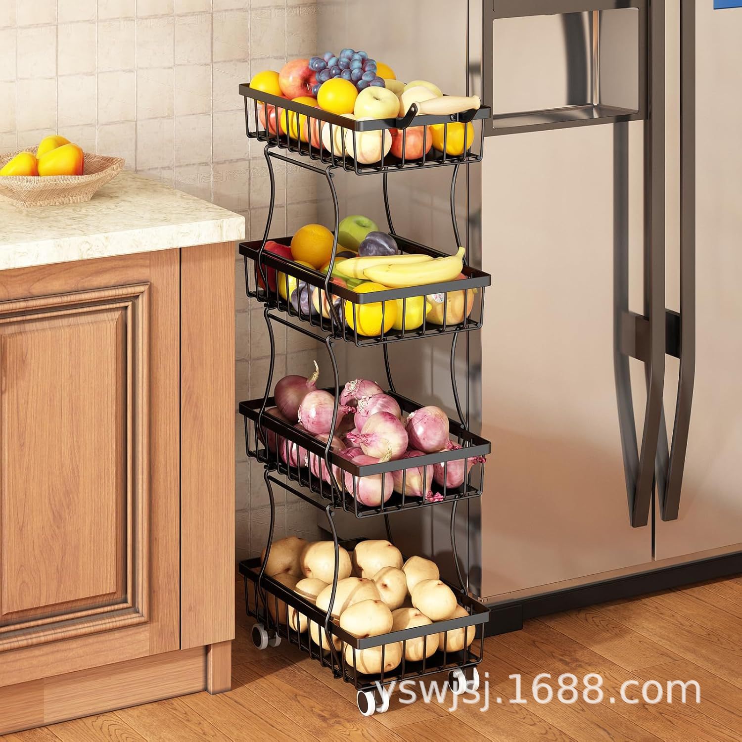 주방 틈새 수납 선반, 바닥에서 천장까지 이어지는 다층 야채 틈새 트롤리, 다기능 가정용 과일 및 잡화 수납 바구니