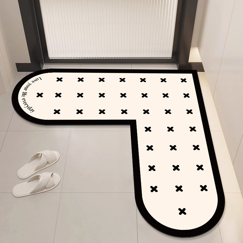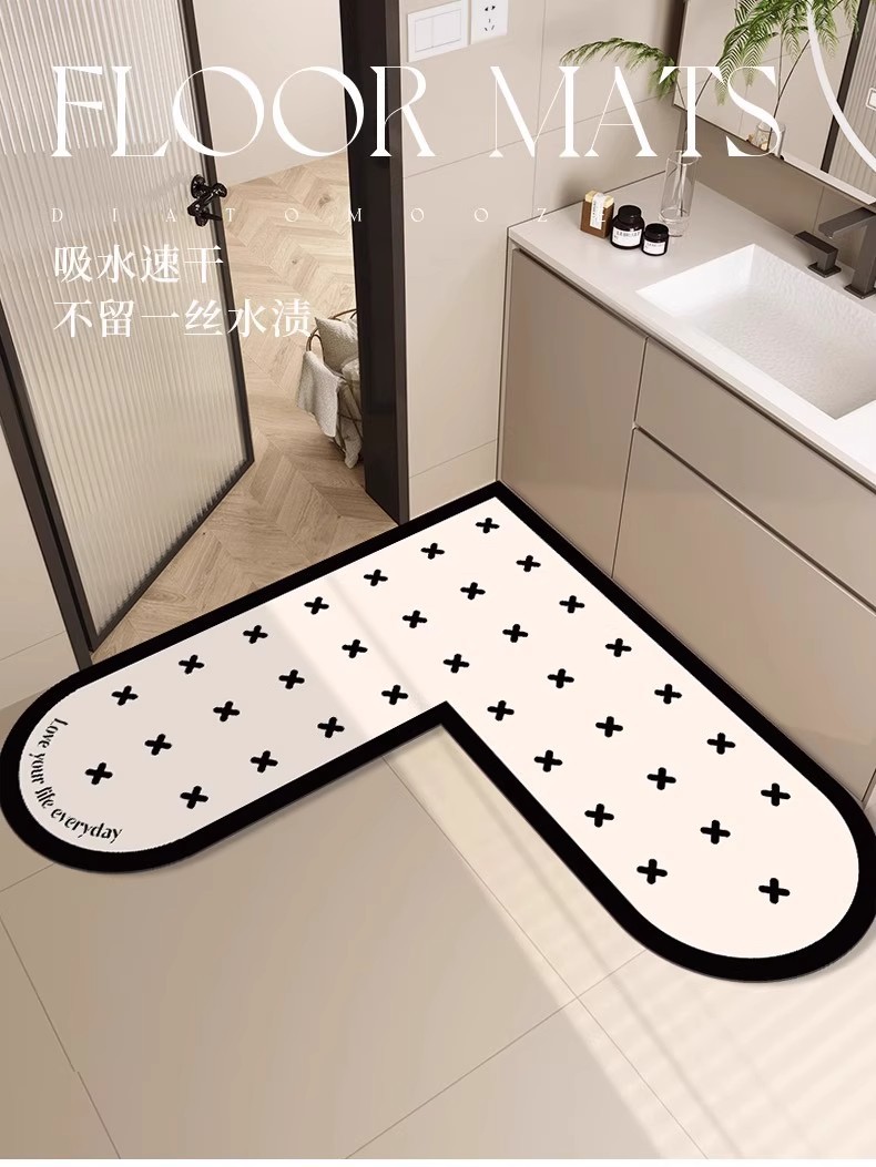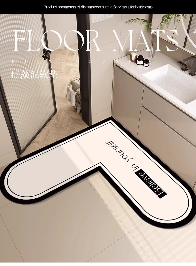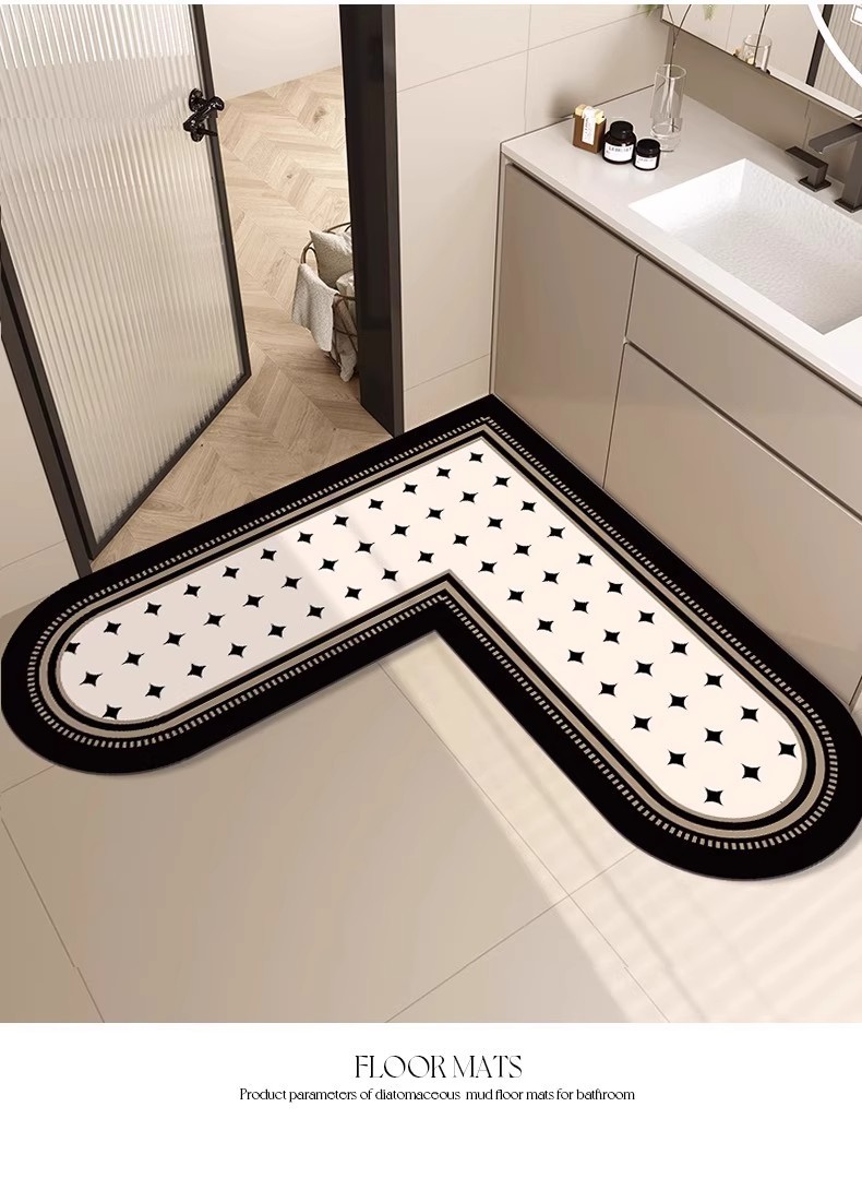 가벼운 고급 고급 욕실 바닥 매트, 화장실 문 흡수성 속건 매트, L자형 부드러운 규조토 진흙 미끄럼 방지 매트스토어 가기