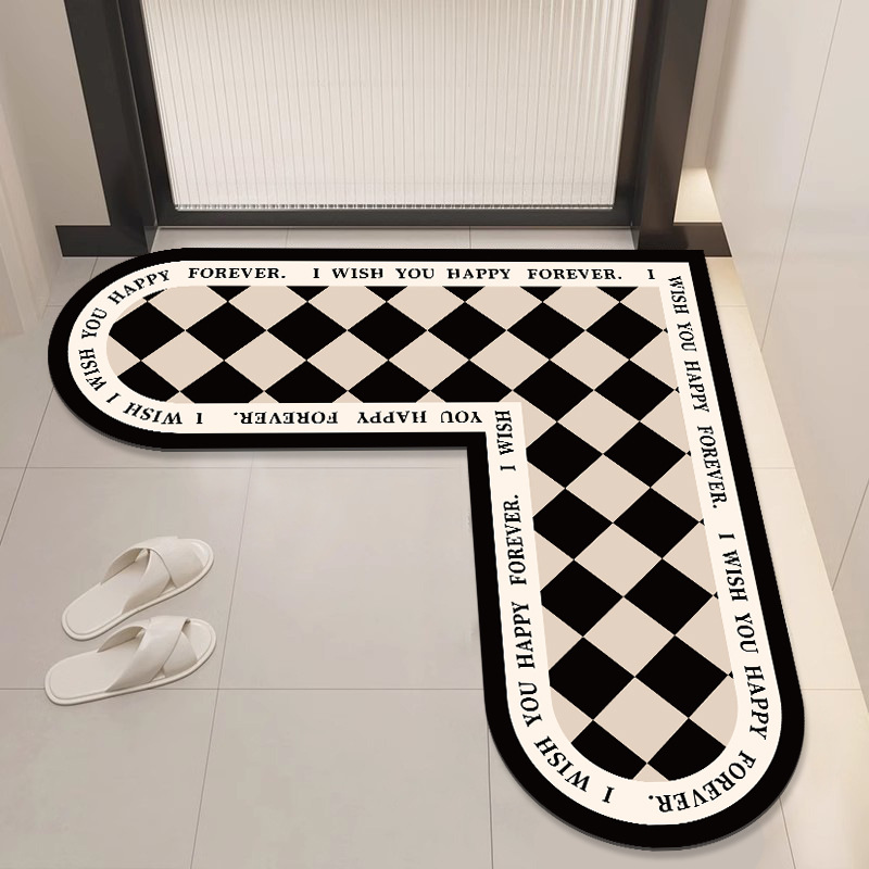 가벼운 고급 고급 욕실 바닥 매트, 화장실 문 흡수성 속건 매트, L자형 부드러운 규조토 진흙 미끄럼 방지 매트
