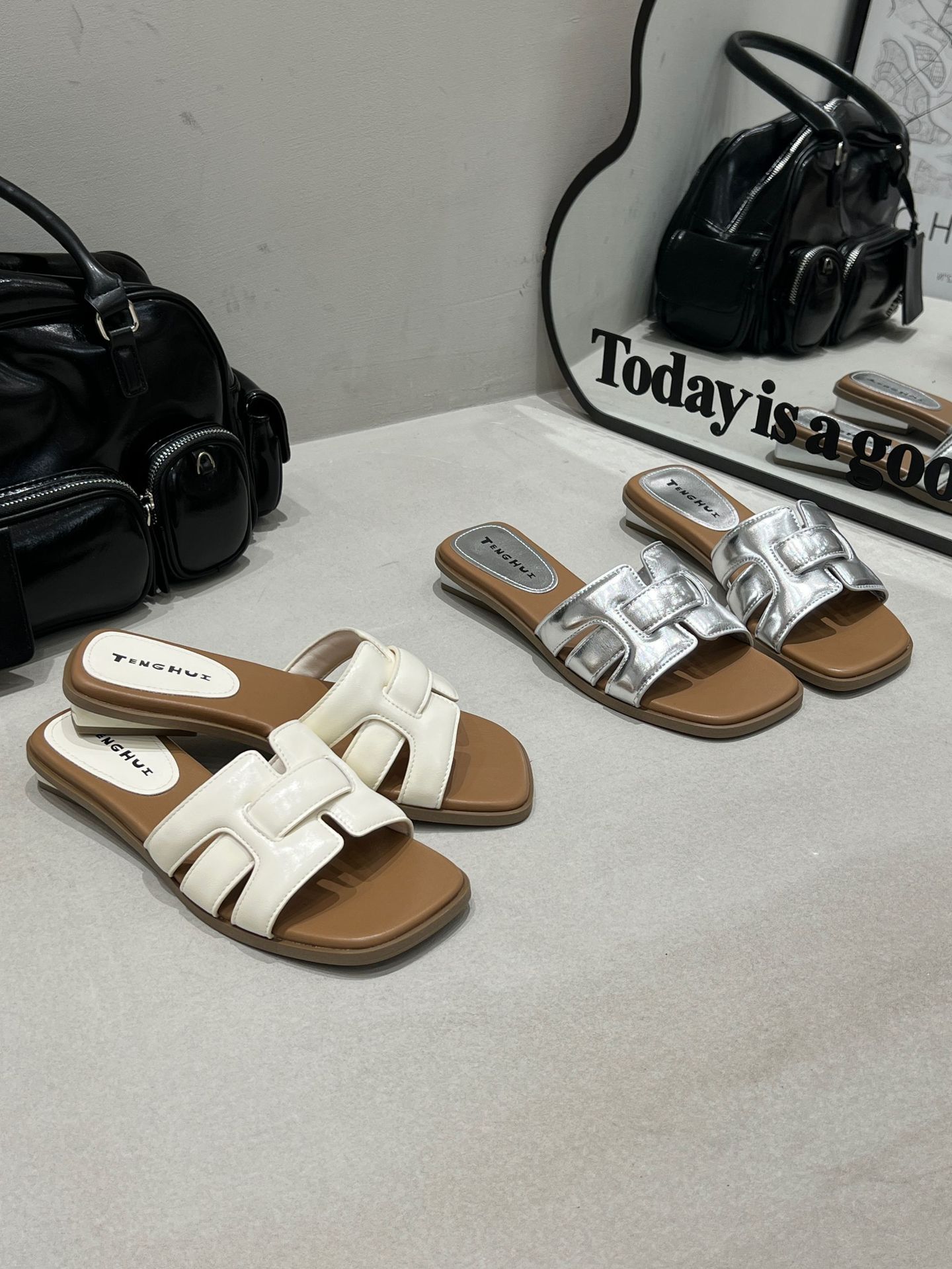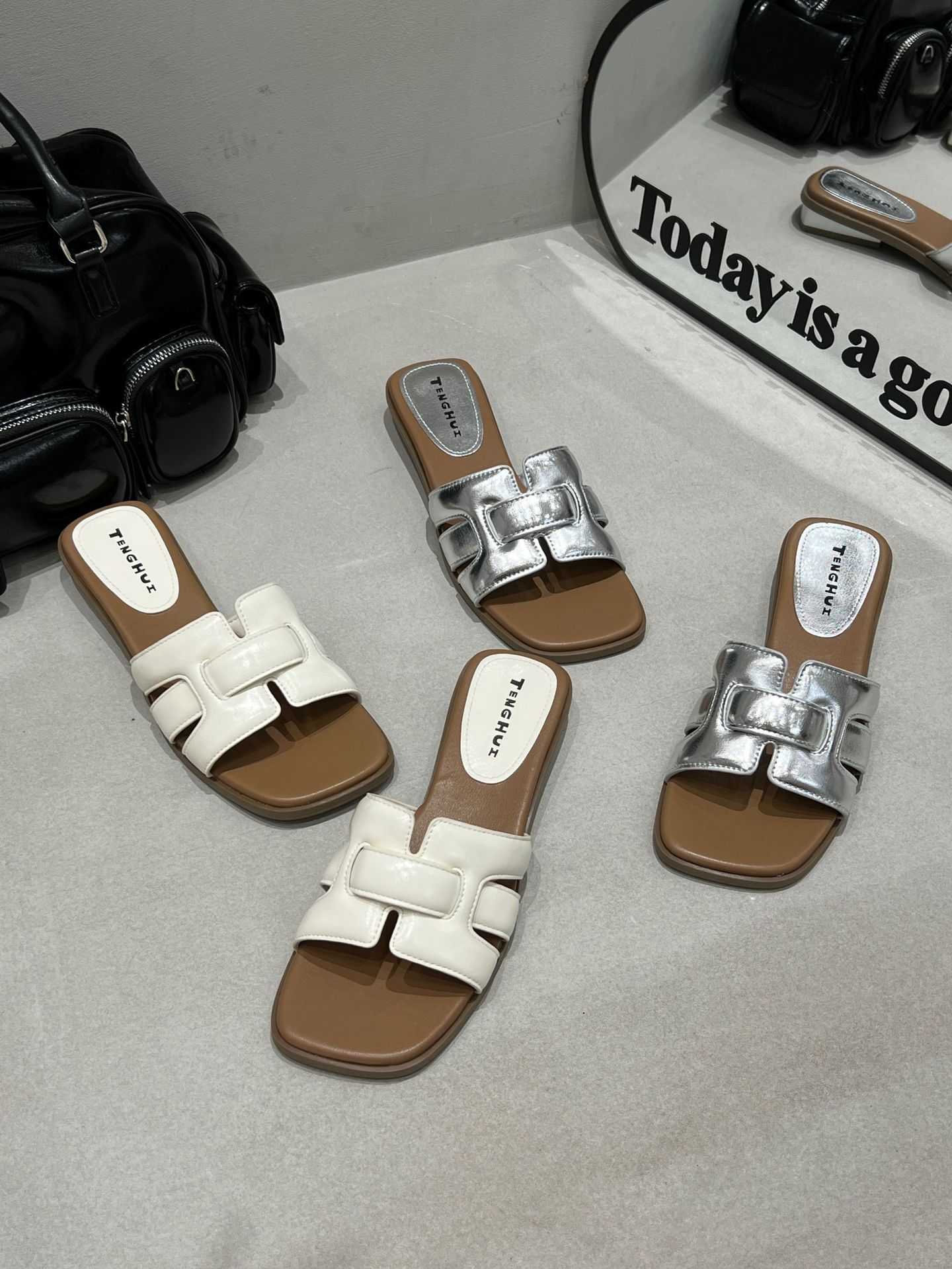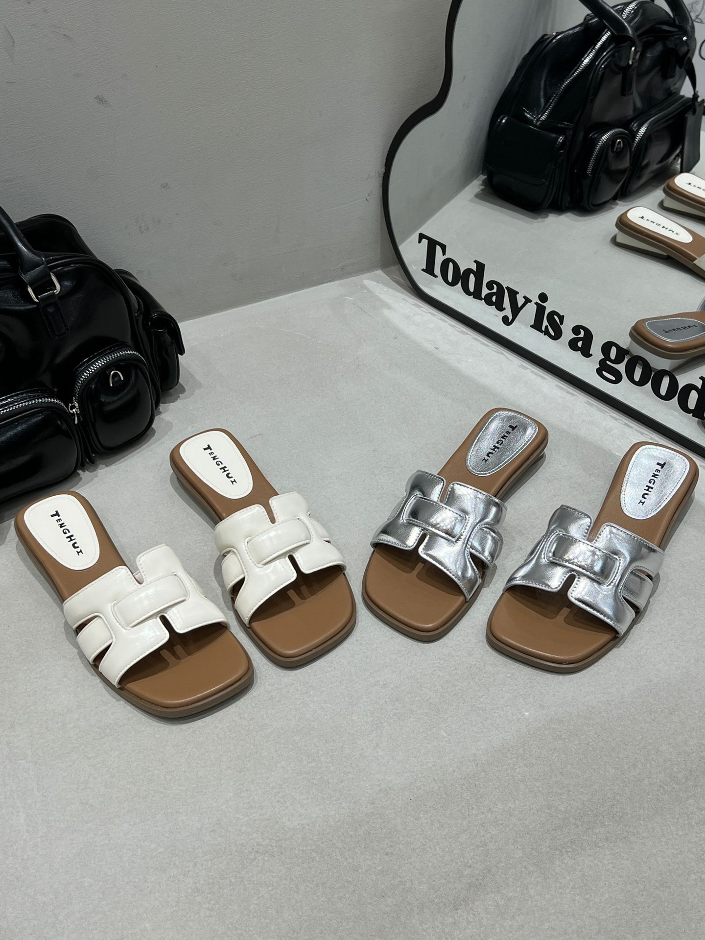 여름 아우터로 착용할 수 있는 여성용 Bamu Show 우븐 슈퍼 핫 하프 슬리퍼 2025 여성용 새로운 고급 게으른 슬립온 샌들스토어 가기