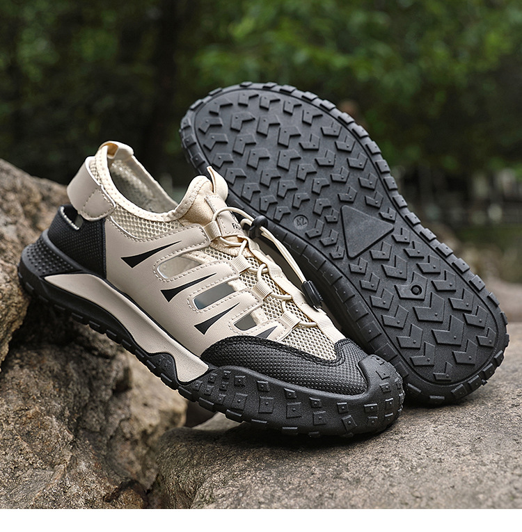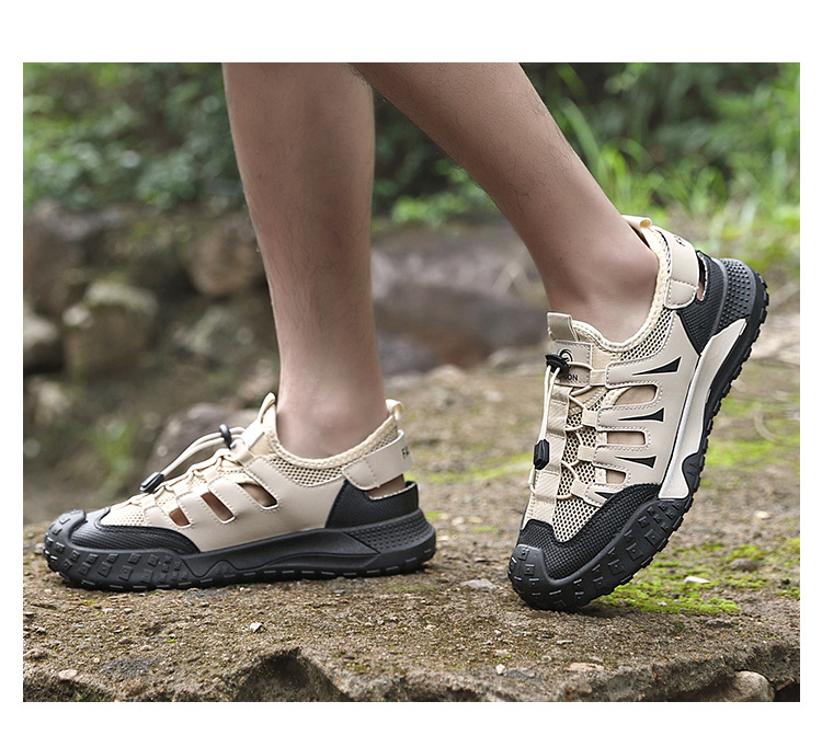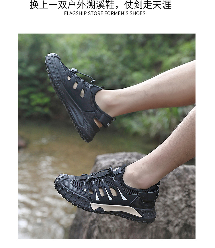 여름 신작 남성용 야외 스포츠 웨이딩 슈즈, 건조하고 통기성이 뛰어난 대형 홀 메쉬 슈즈, 중공 슈즈, 메쉬 미끄럼 방지 남성용 슈즈