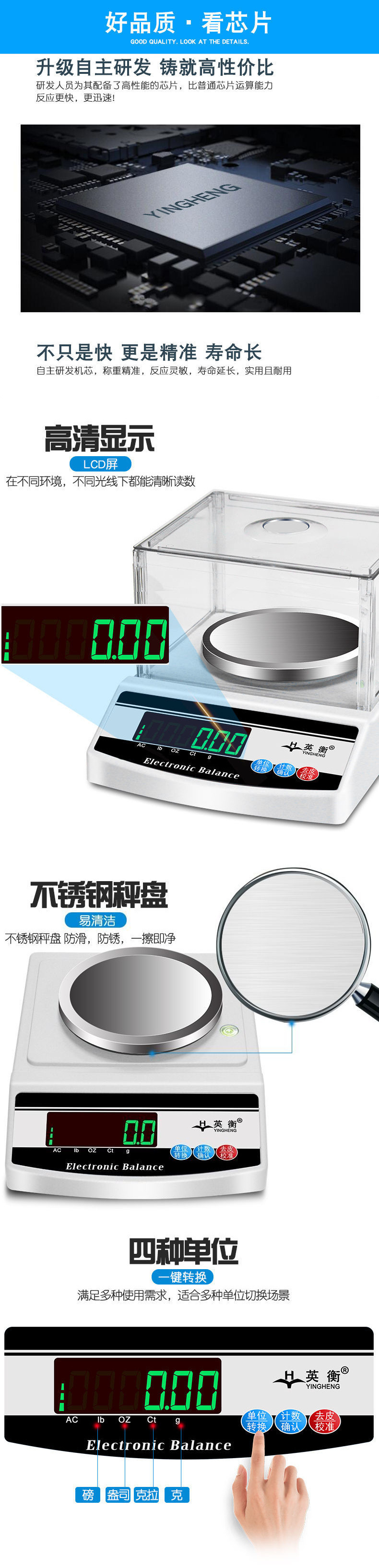 Yingheng 전자 저울 0.001g 보석 저울 0.01g 정확한 그램 약물 저울 0.1 골드 저울 실험실 저울스토어 가기