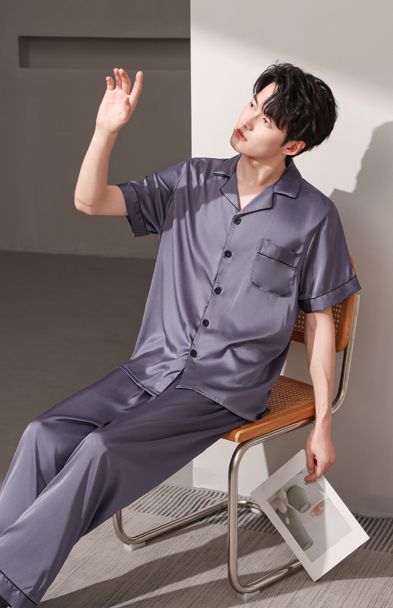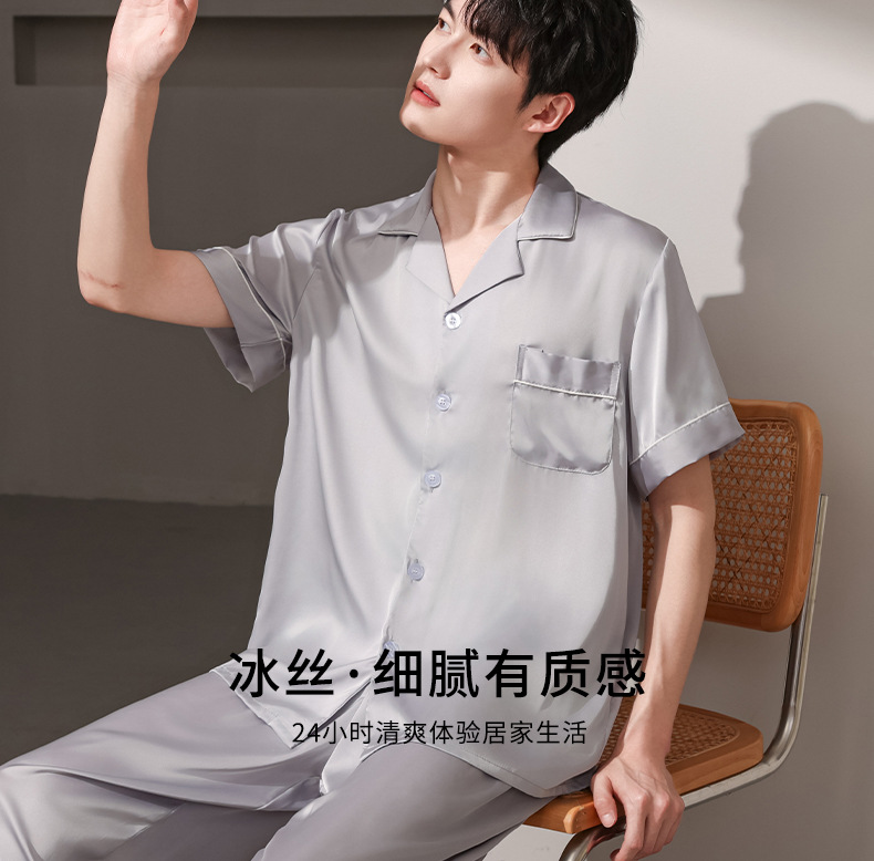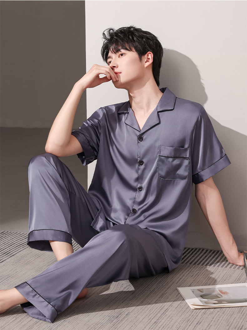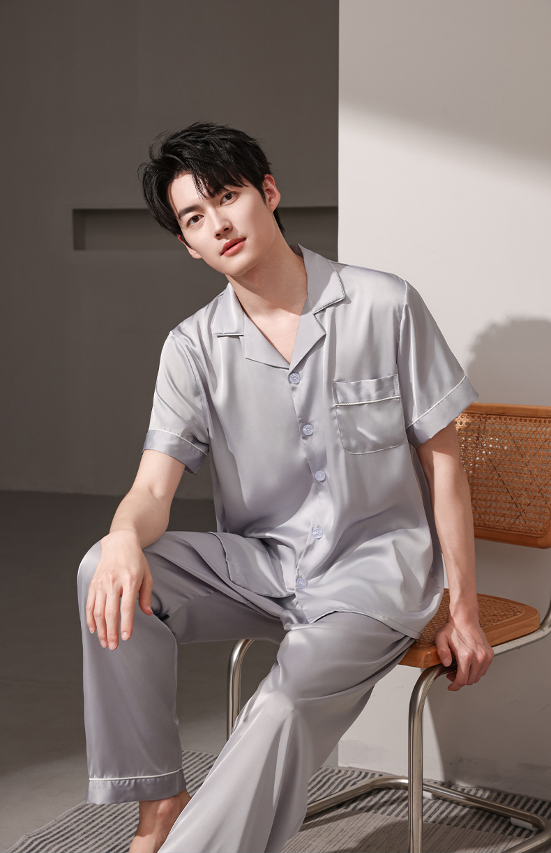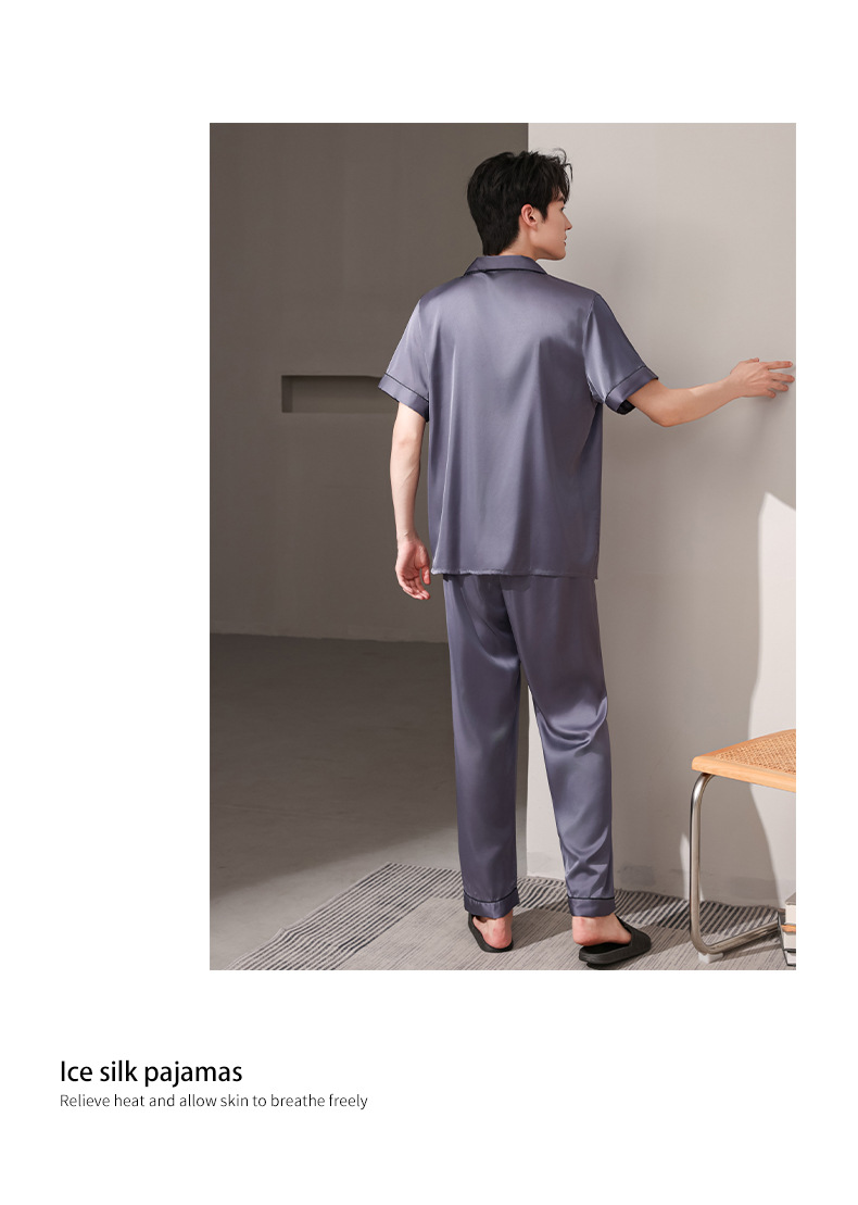 여름 실크 잠옷 남자 여름 반팔 반바지 풀오버 얇은 아이스 실크 남자 캐주얼 홈 의류 세트
