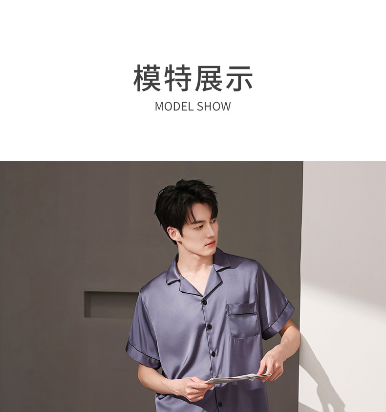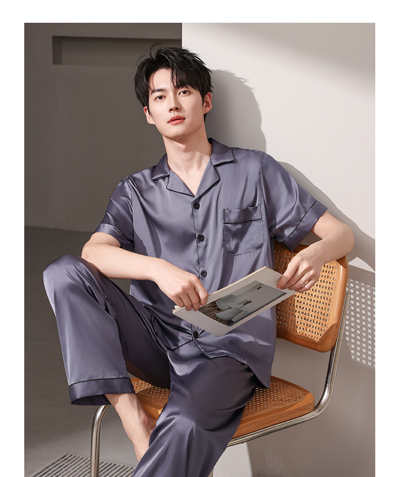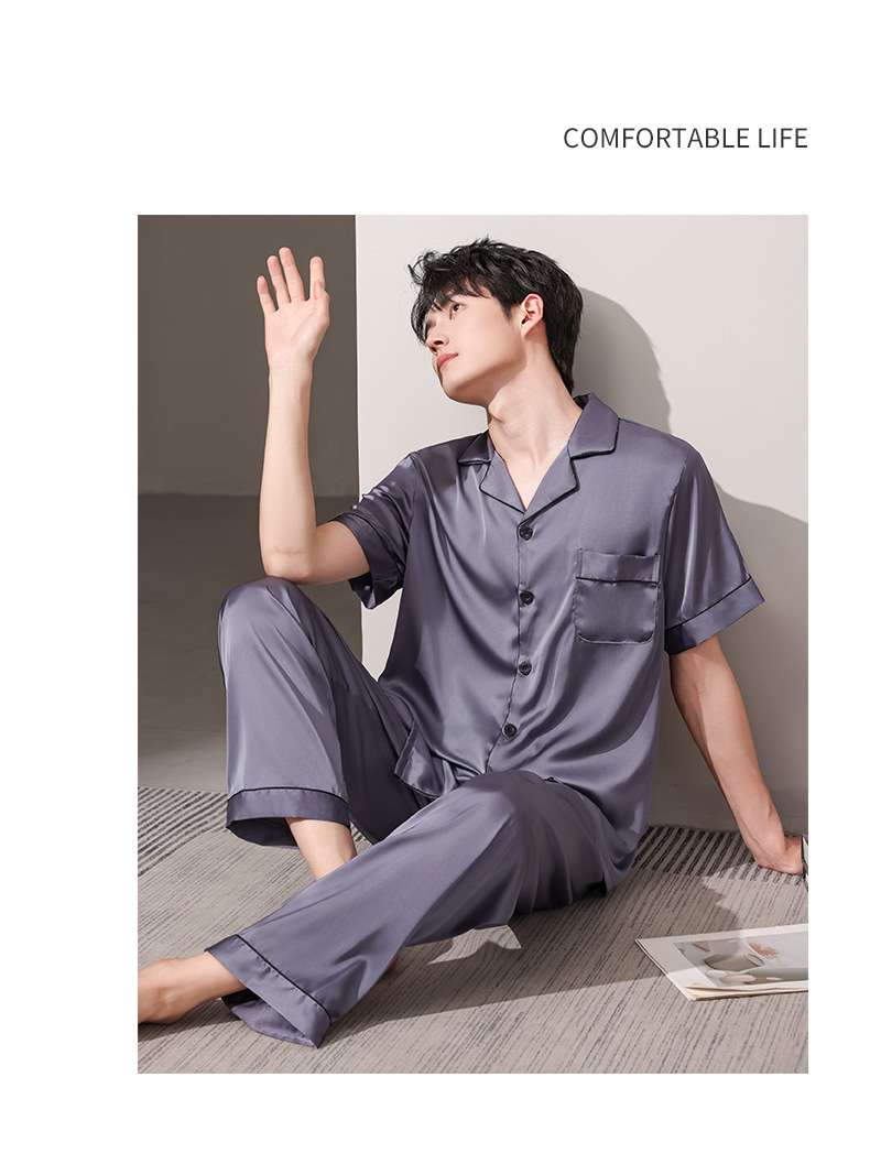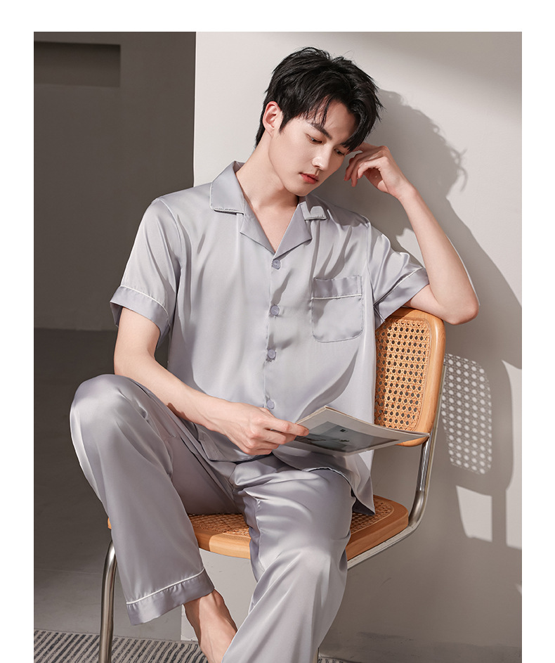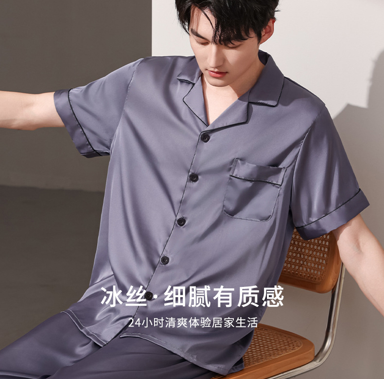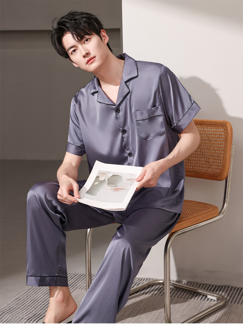 여름 실크 잠옷 남자 여름 반팔 반바지 풀오버 얇은 아이스 실크 남자 캐주얼 홈 의류 세트