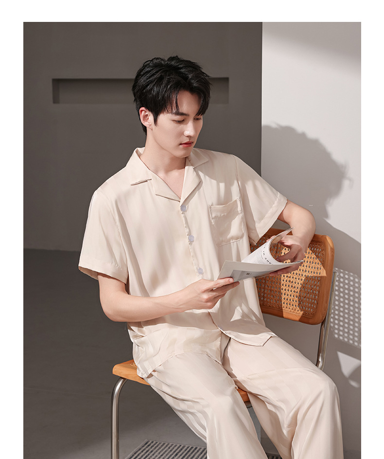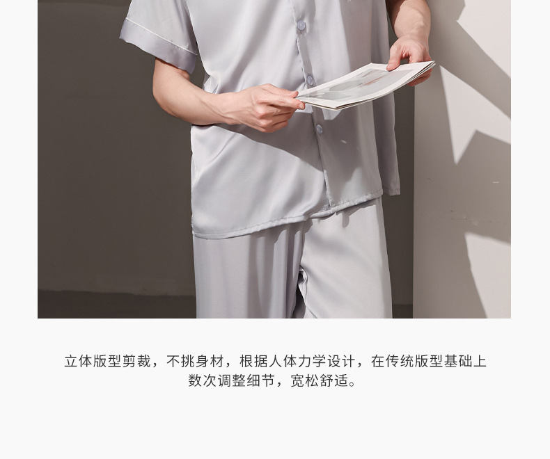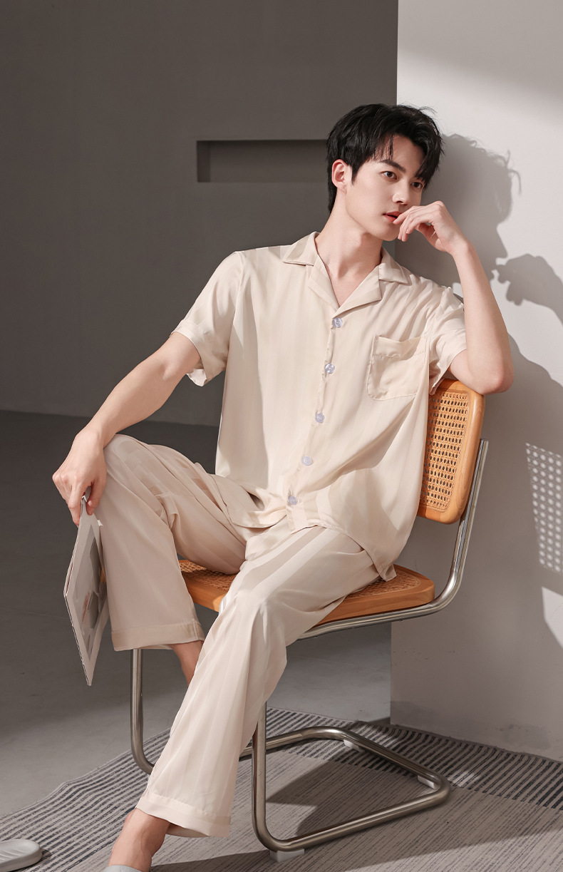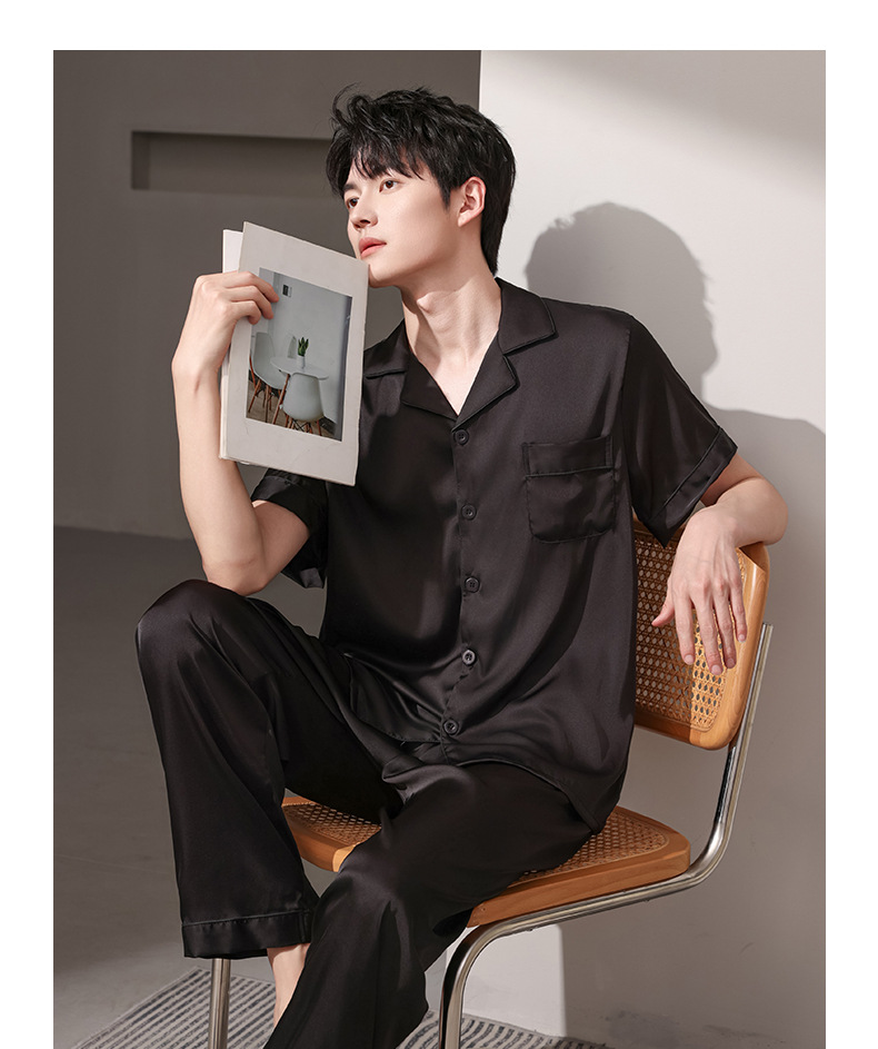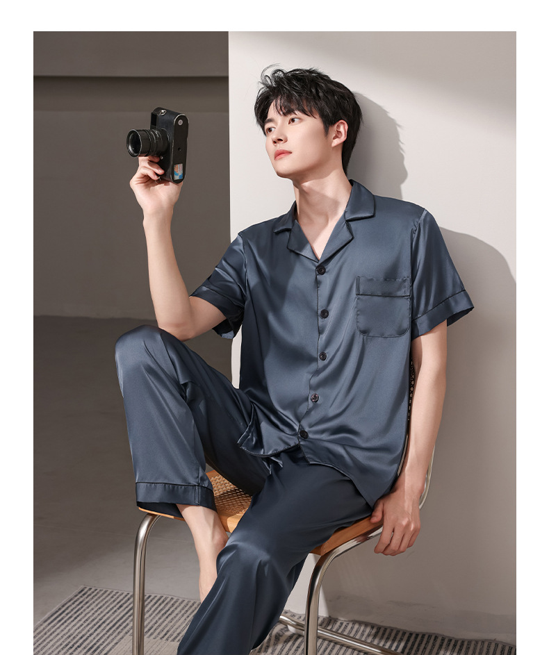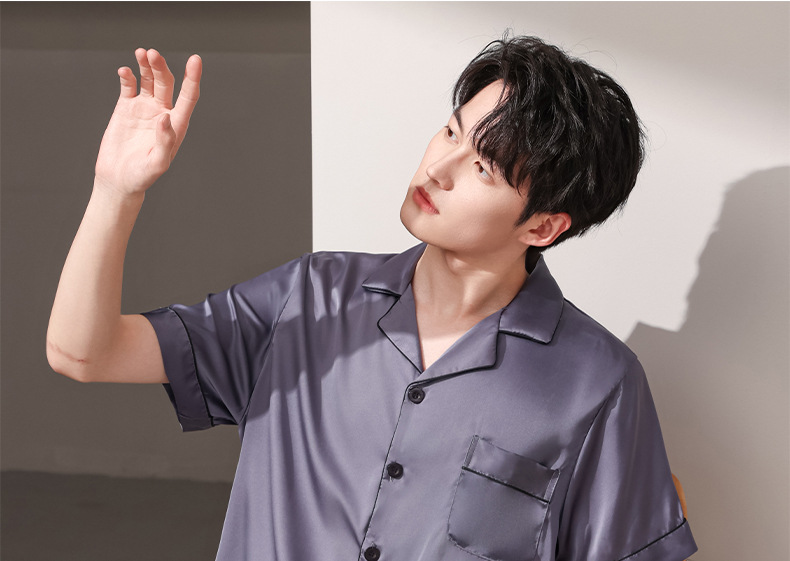 여름 실크 잠옷 남자 여름 반팔 반바지 풀오버 얇은 아이스 실크 남자 캐주얼 홈 의류 세트