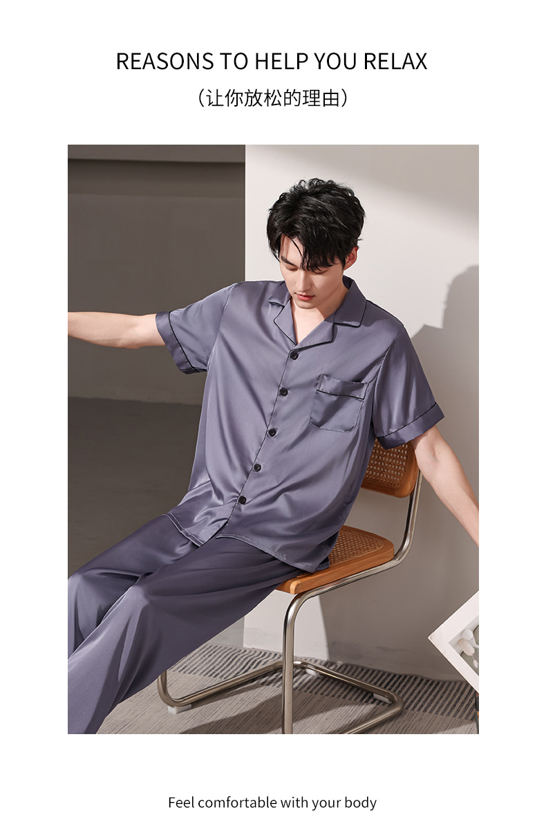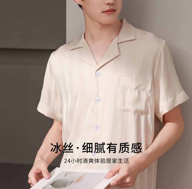 여름 실크 잠옷 남자 여름 반팔 반바지 풀오버 얇은 아이스 실크 남자 캐주얼 홈 의류 세트스토어 가기