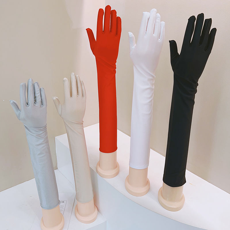 여성용 여름 풀핑거 확장형 자외선 차단 장갑, 전기차를 탄 신부를 위한 아이스 실크 팔 보호대, 얇고 신축성이 뛰어난 소매