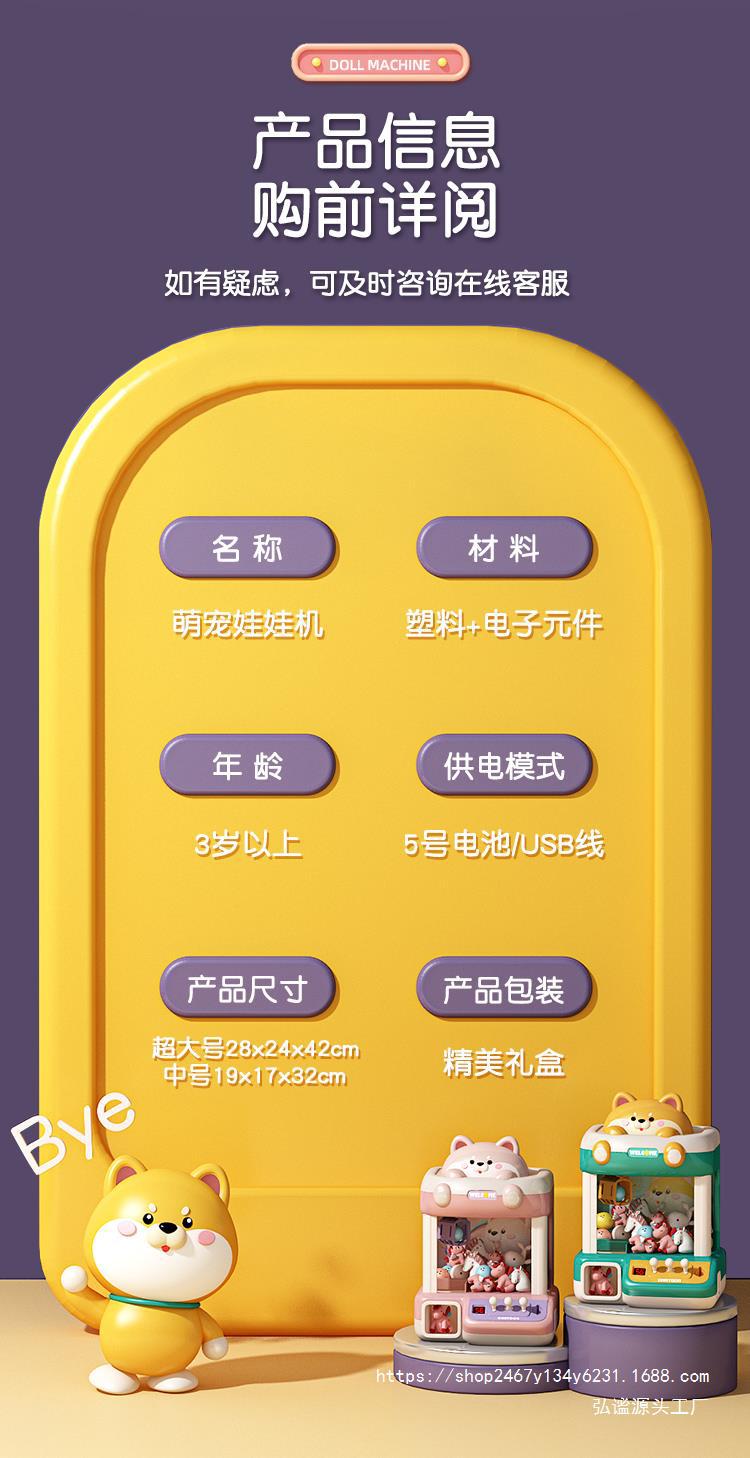 2025 새로운 어린이 인형 뽑기 기계 장난감 대형 가정용 인형 작은 가샤폰 기계 소녀 생일