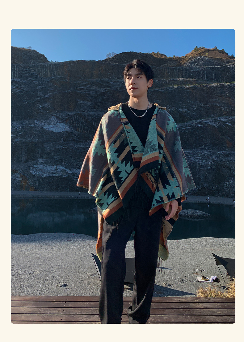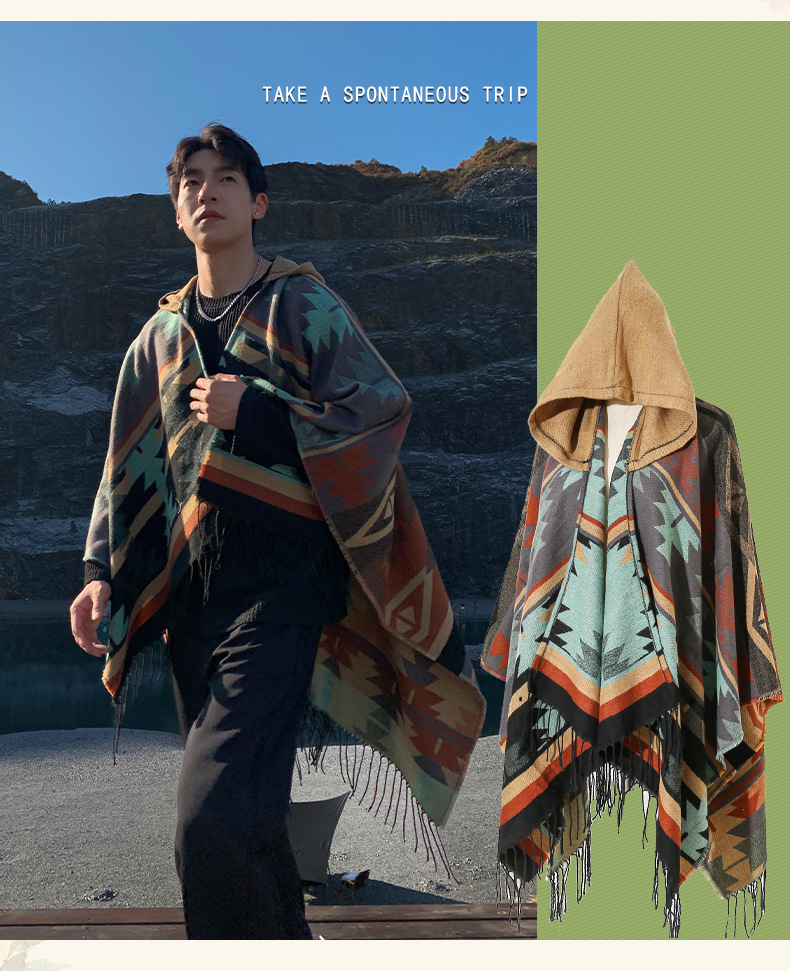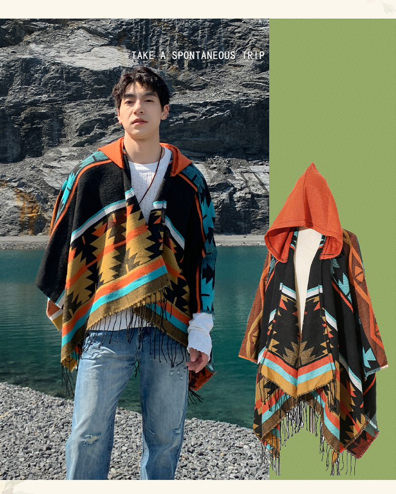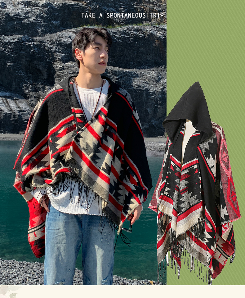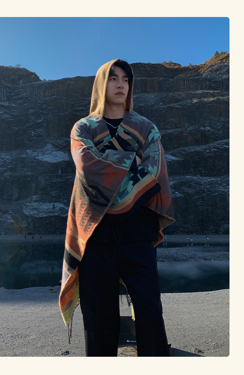 자연스러운 풀오버, 편안하고 다재다능하며 개성 넘치는 플레이웨어 망토, 사각형 화살표, 복고풍 통기성 슬릿 스카프 망토