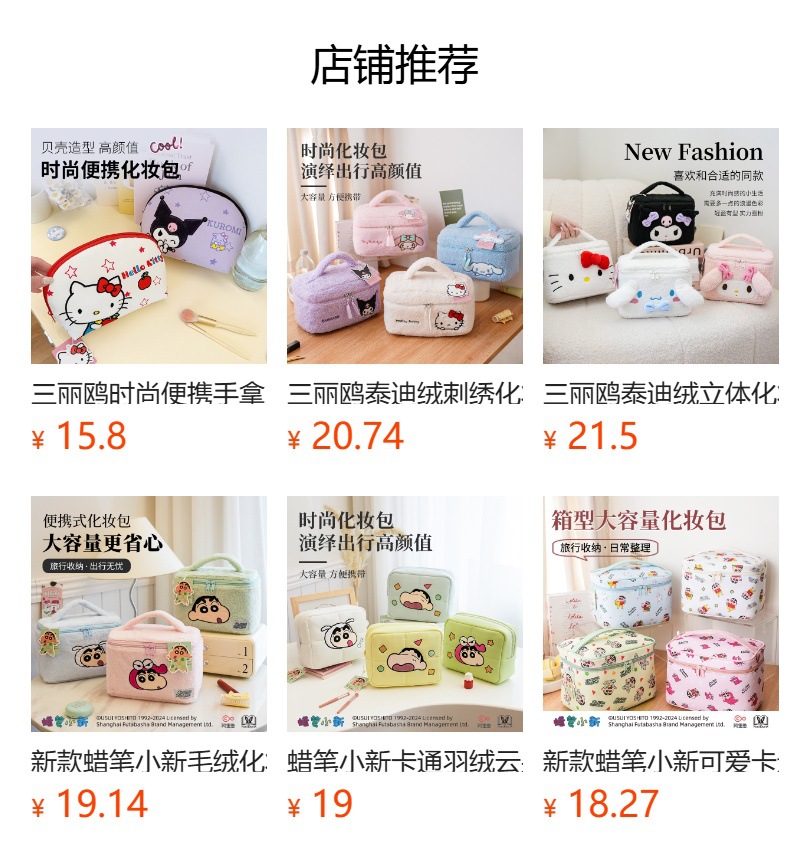 Sanrio 입체 패션 귀여운 만화 자수 화장품 가방 대용량 고가치 여행 휴대용 보관 가방스토어 가기
